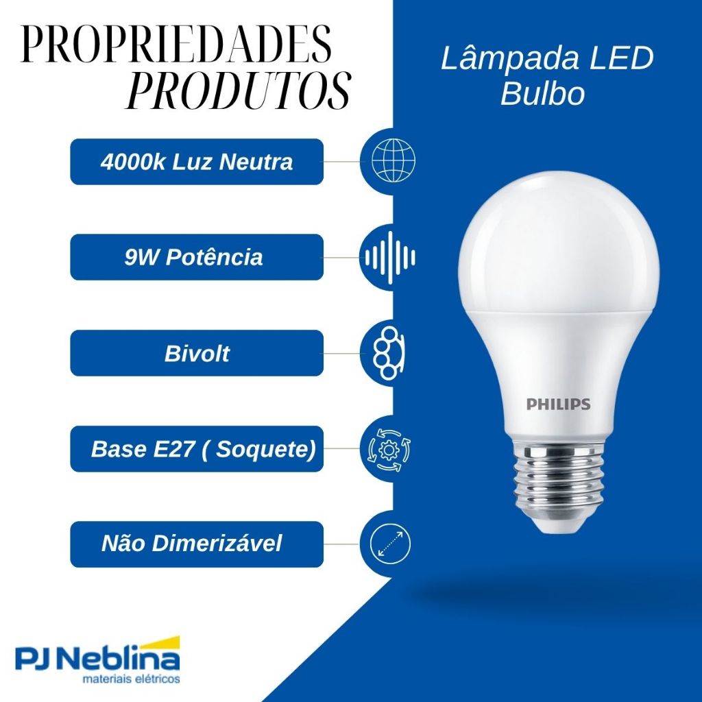 Kit 20 Lâmpadas LED Philips A55 9W 4000K | Luz Branca Neutra para Casas, Escritórios e Lojas
