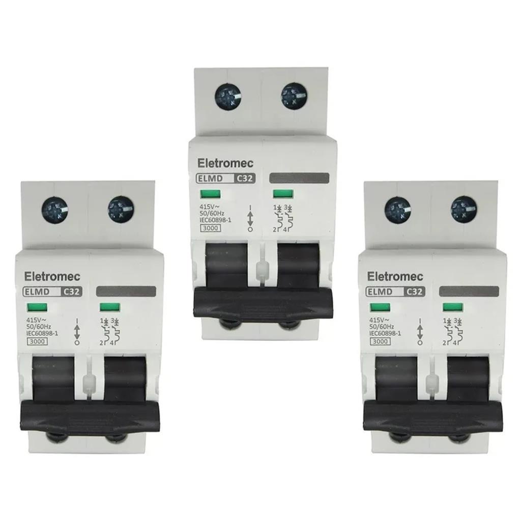 Kit 3 Disjuntor 32A Amperes Bipolar Curva C Eletromec