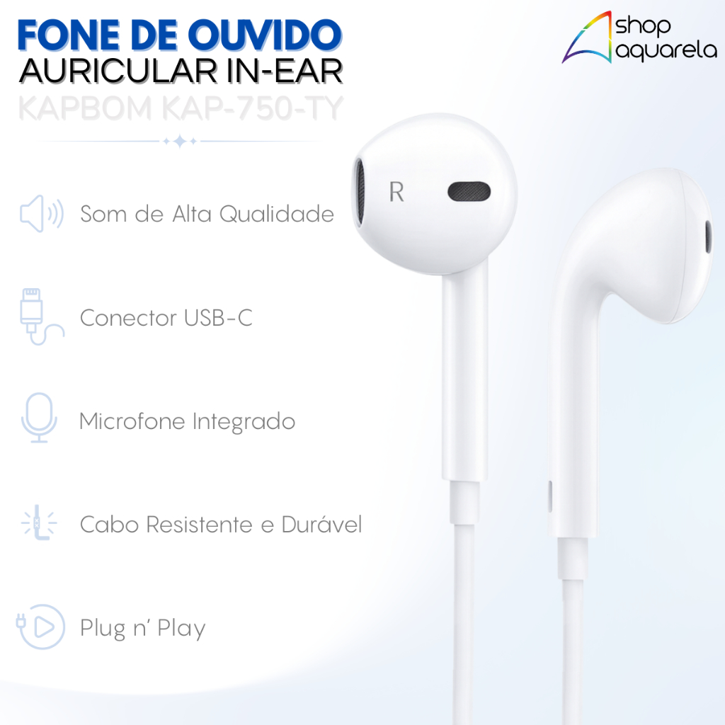 Fone De Ouvido Stereo Alta Definição Tipo C Type Usb-C Com Fio Microfone