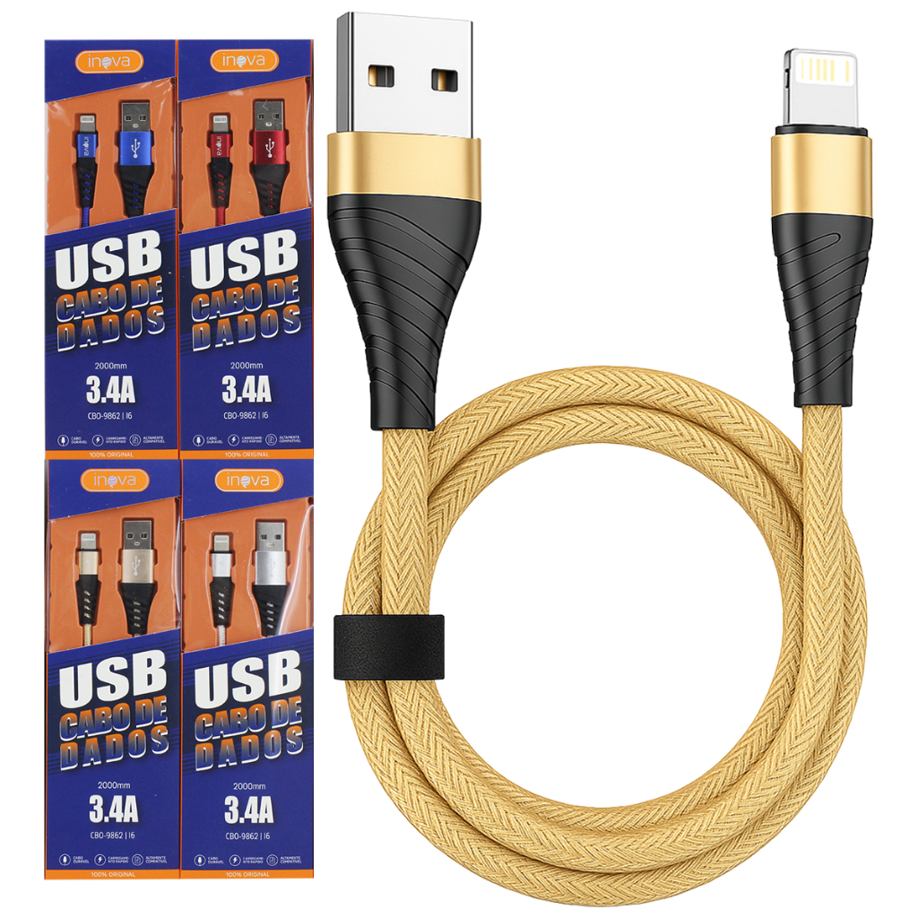 Kit 4 Unidades Cabo Carregador Lightning Iphone Inova 2 Metros Cores Variadas Original
