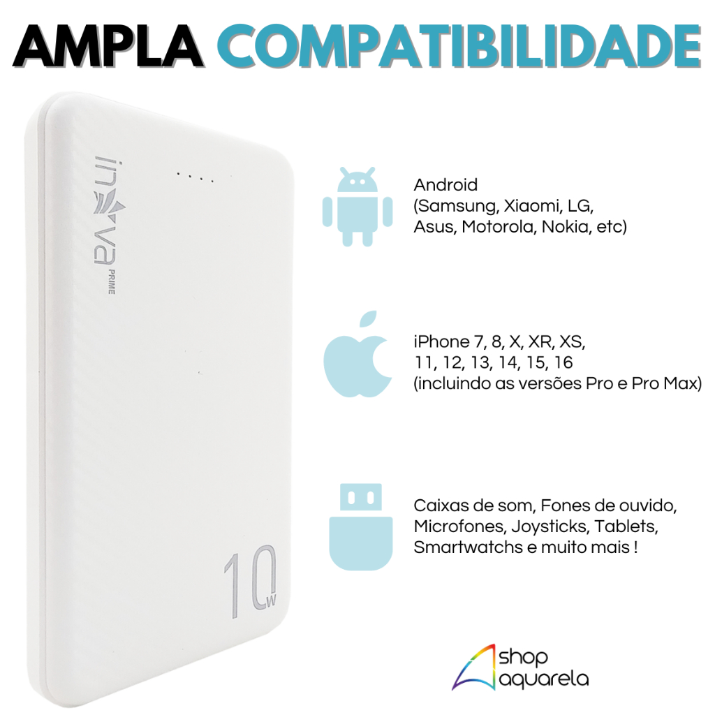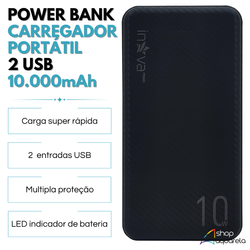 Carregador Portátil Original 10000mAh Inova Power Bank Alta Potência Celular Tipo C Viagem