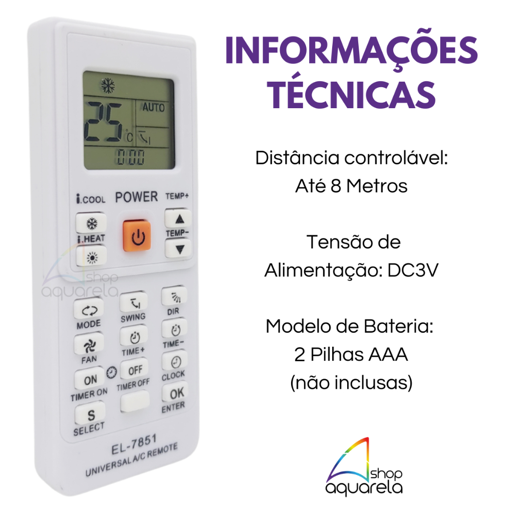 Controle Remoto de Ar Condicionado Universal Compatível