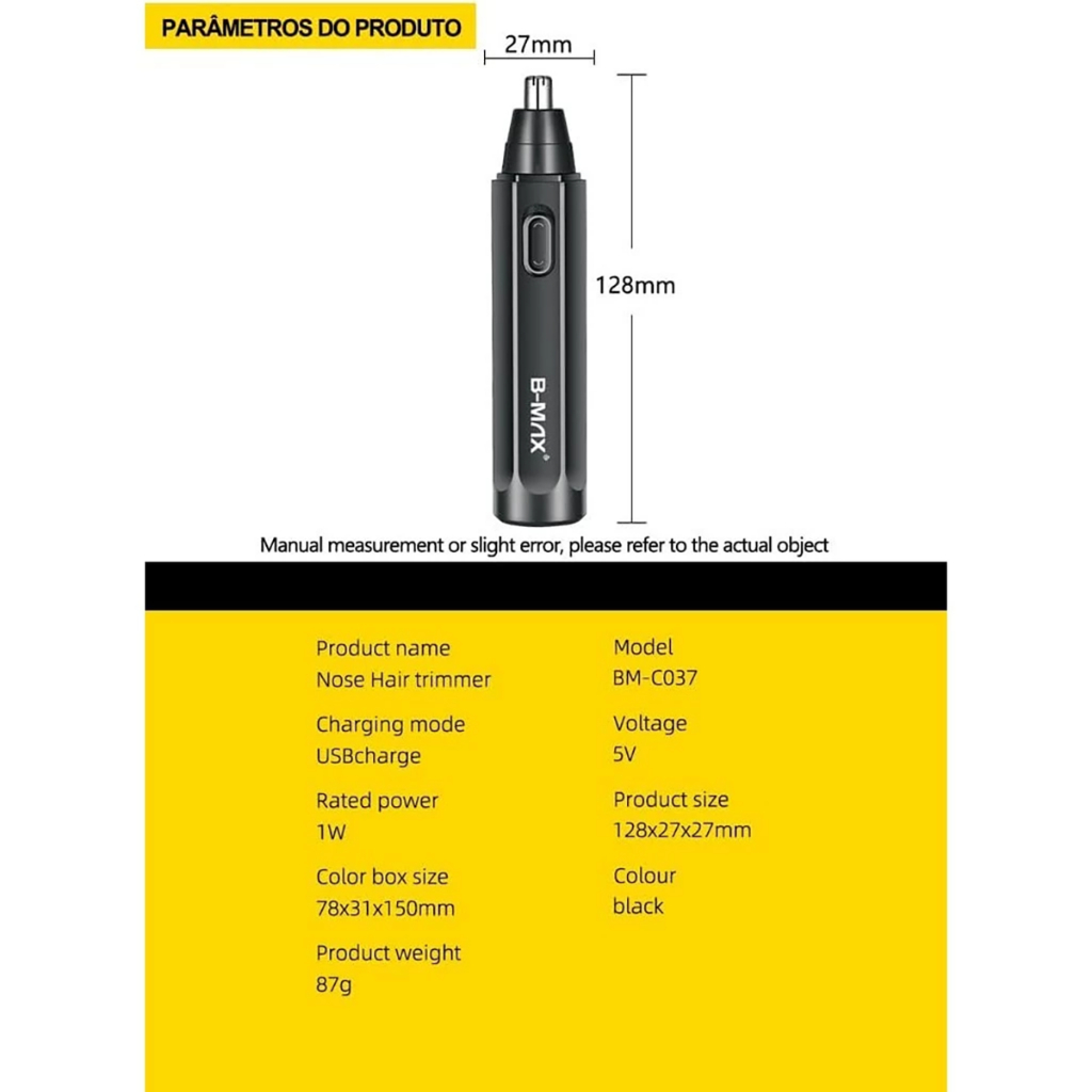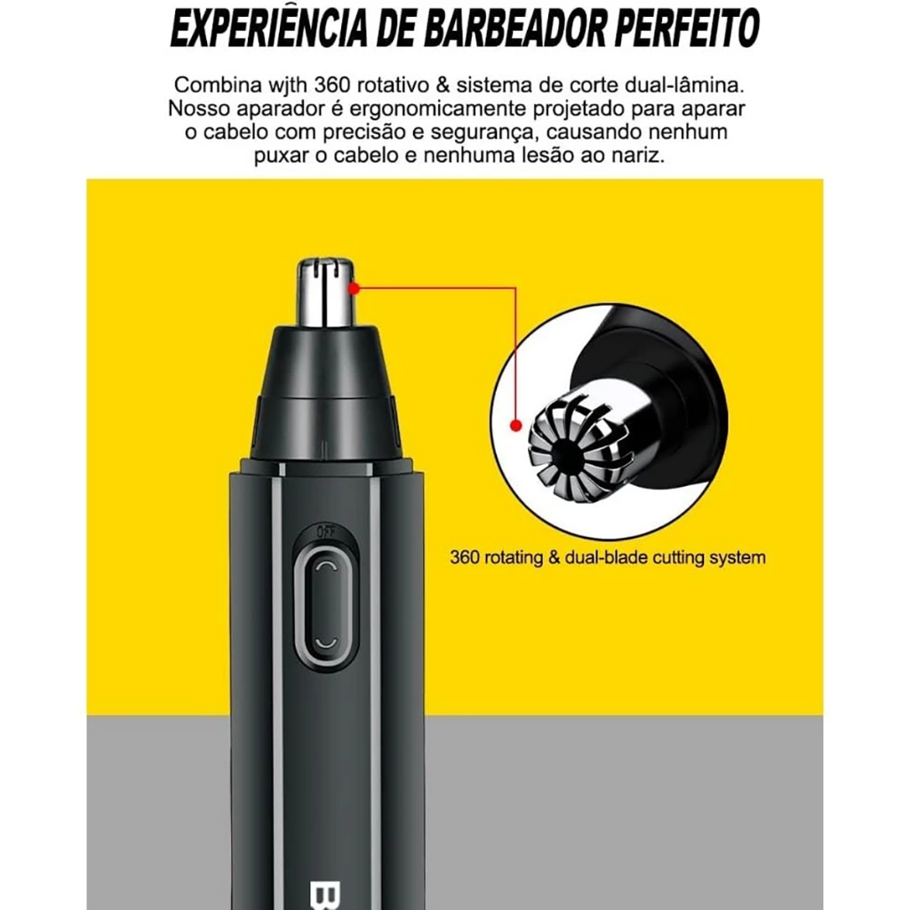 Máquina Aparador de Pelos Nariz Maquininha Recarregável B-Max