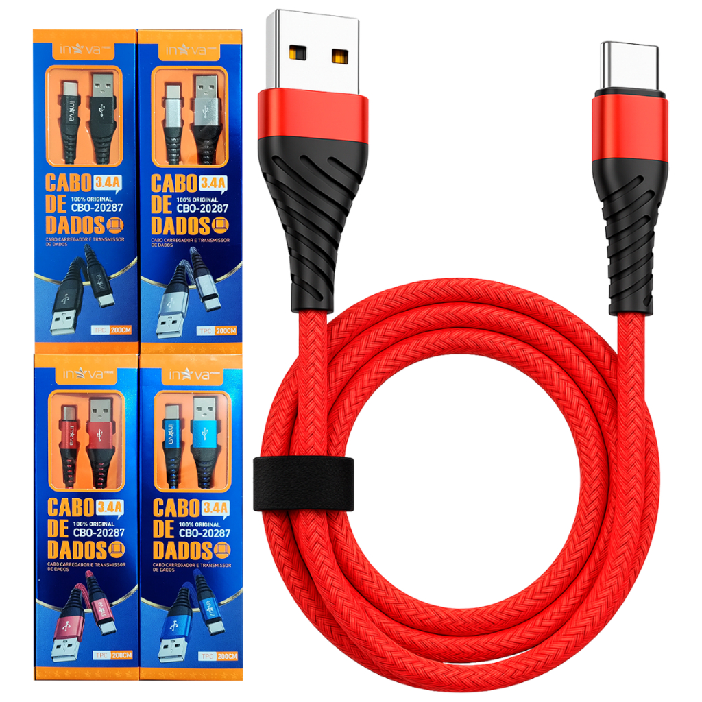 Kit 4 Unidades Cabos Carregador Tipo C Inova Xiaomi 2 Metros Cores Variadas Original