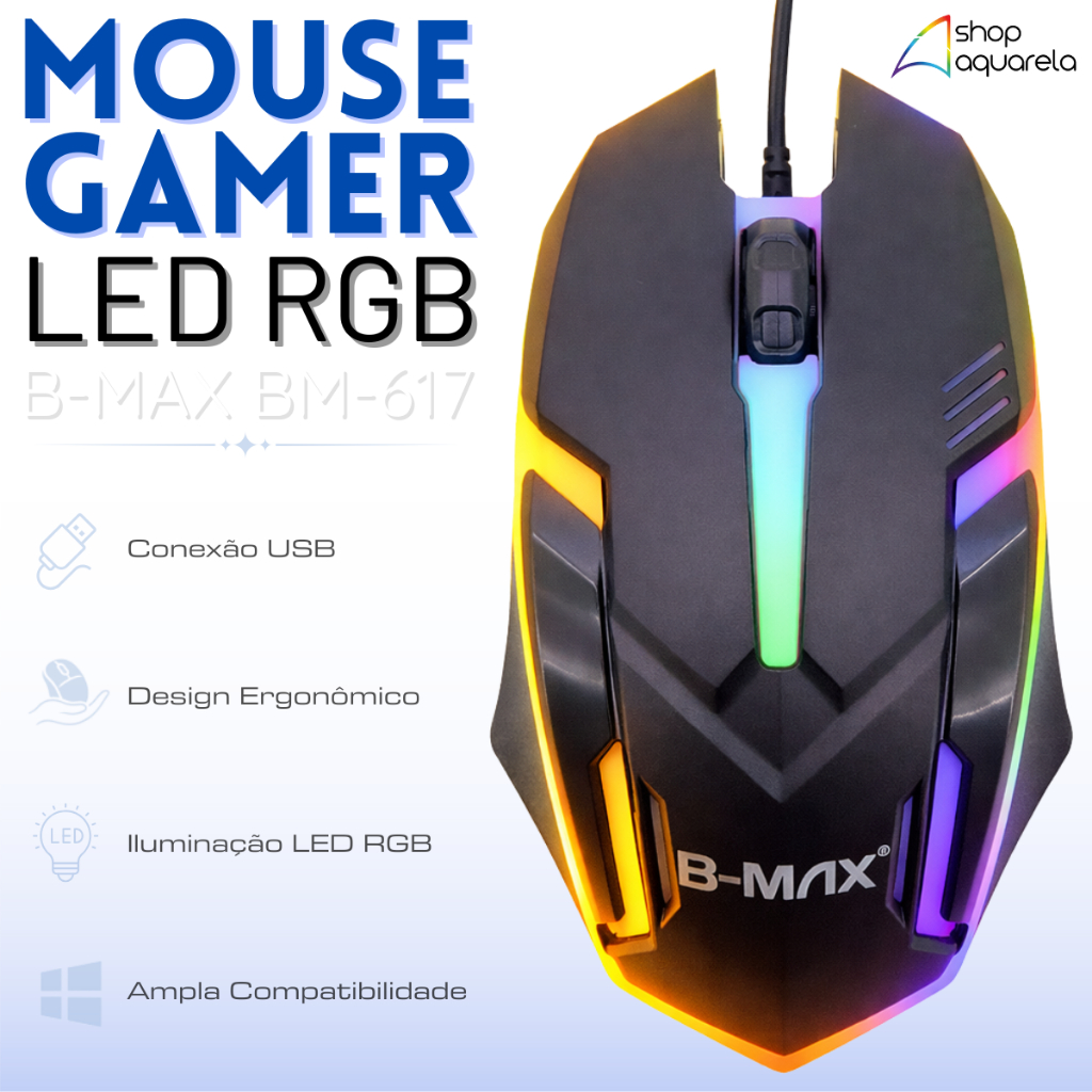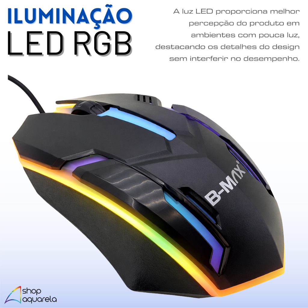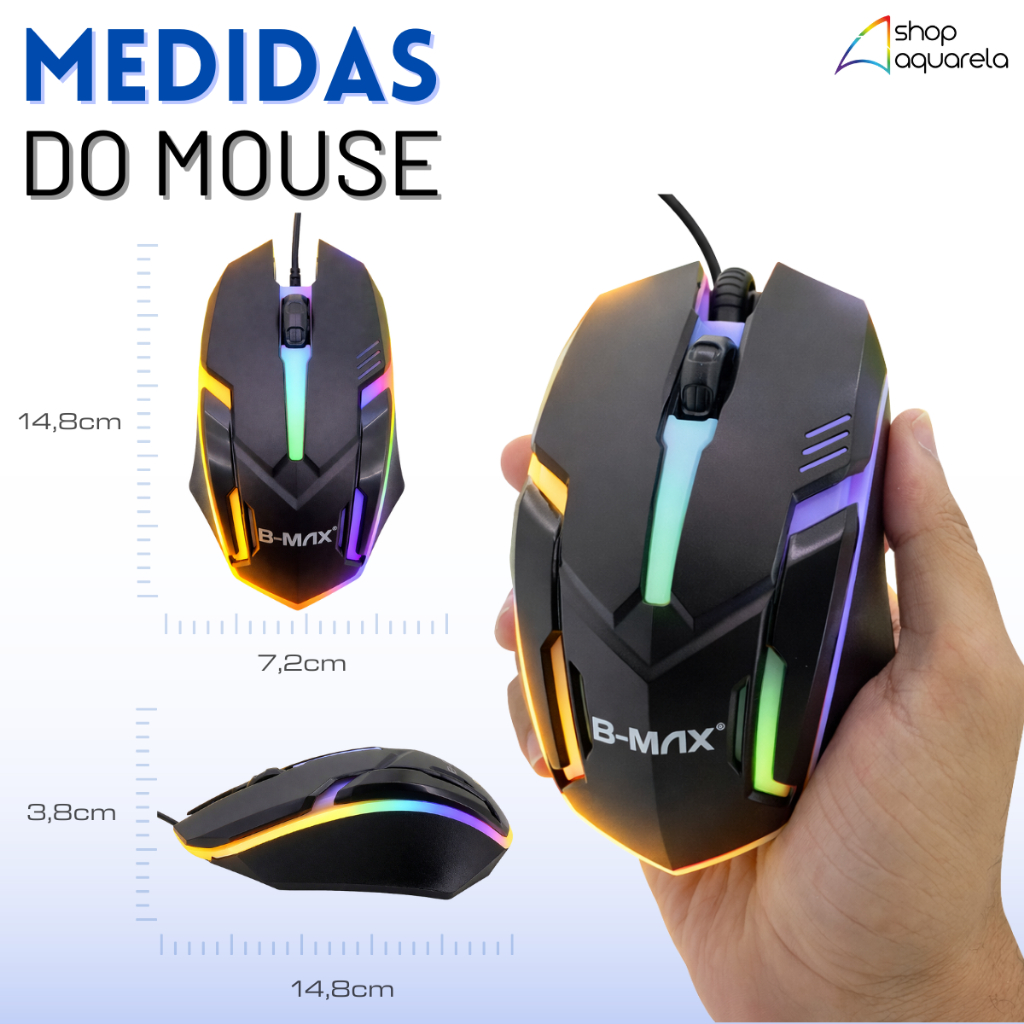 Mouse Gamer LED Com Fio USB 3 Botões Original B-MAX 1000 DPI