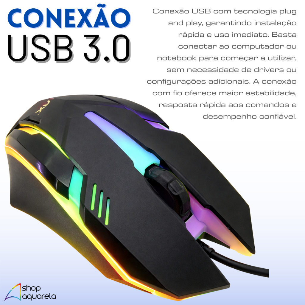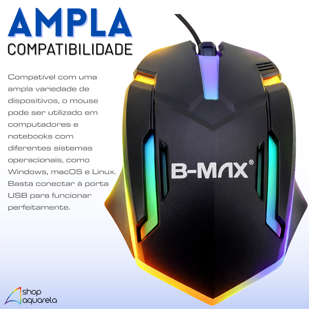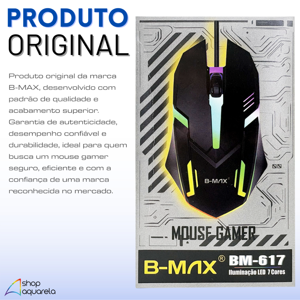 Mouse Gamer LED Com Fio USB 3 Botões Original B-MAX 1000 DPI