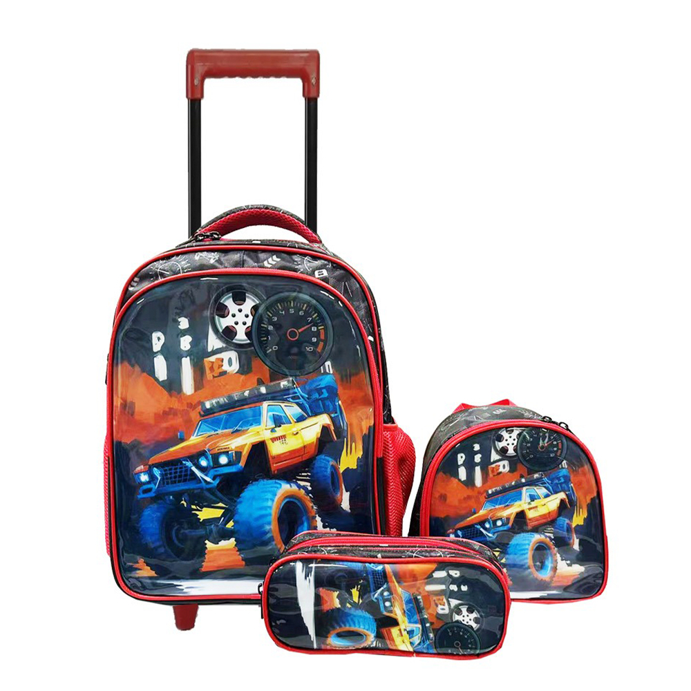 Mochila Infantil Escolar Menino Desenho Carros Lancheira Estojo
