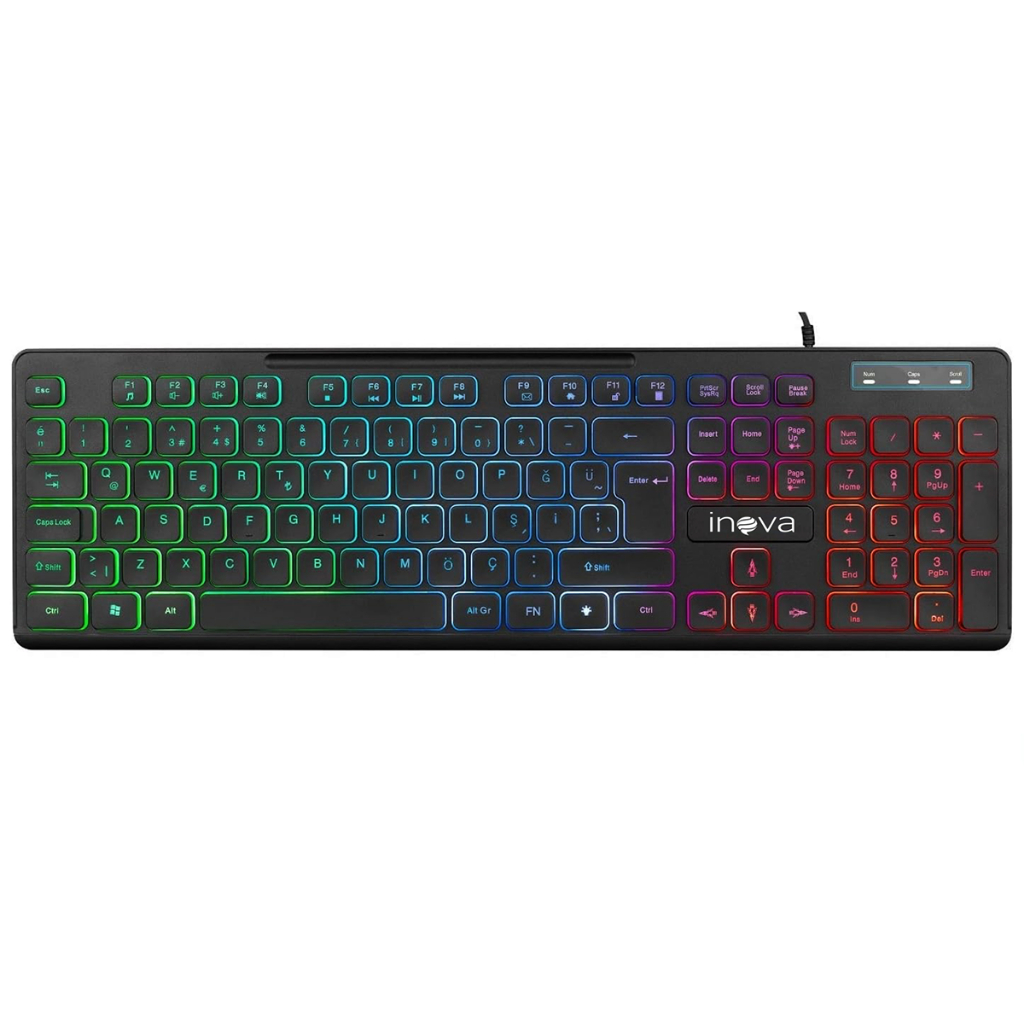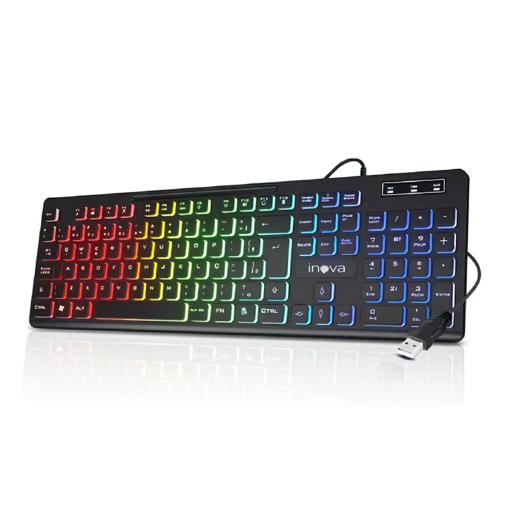 Teclado Gamer LED Com Fio USB Preto RGB Anti Ghosting Multimídia