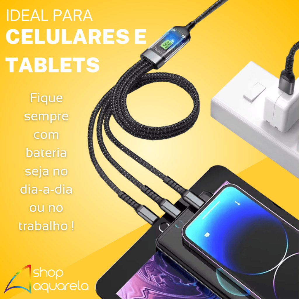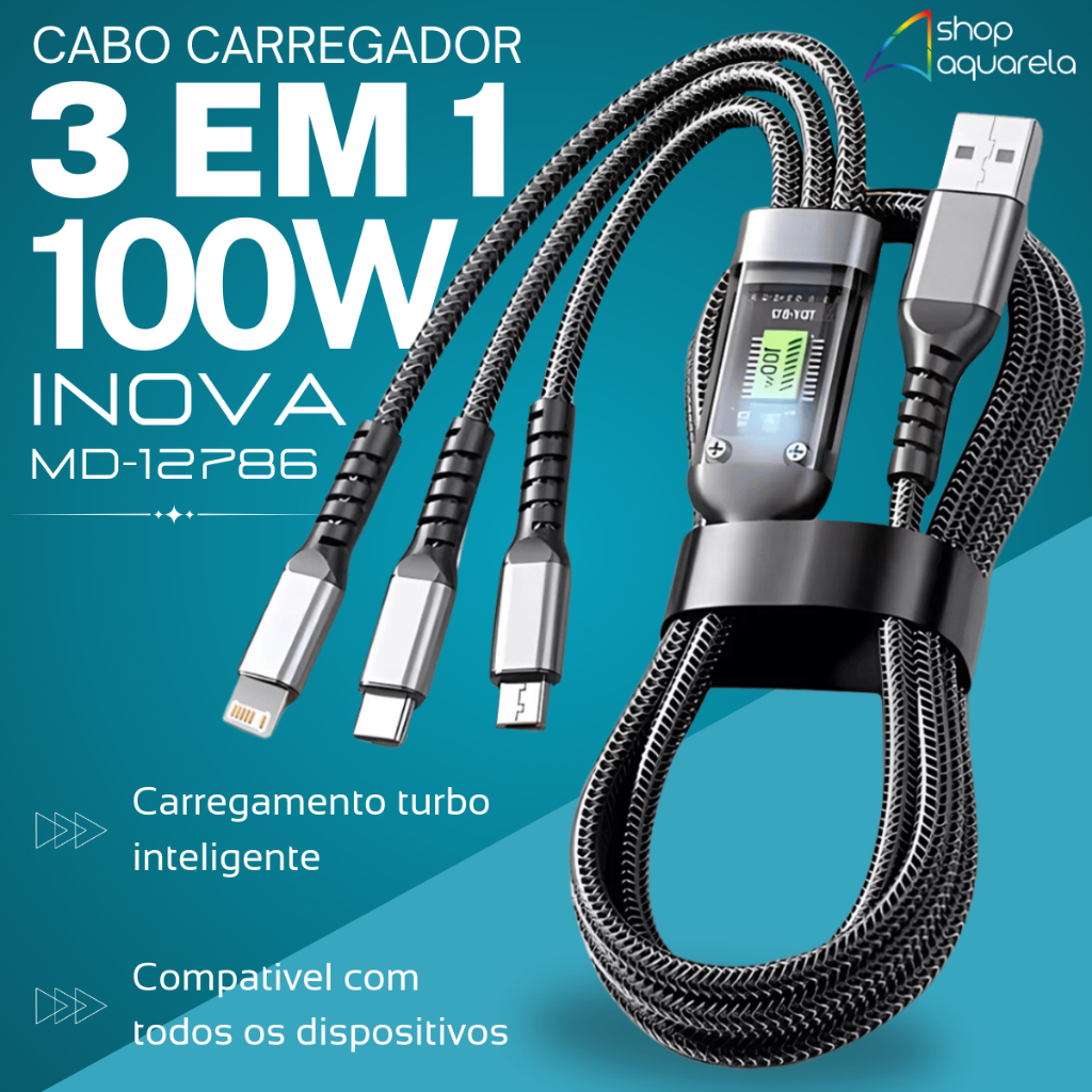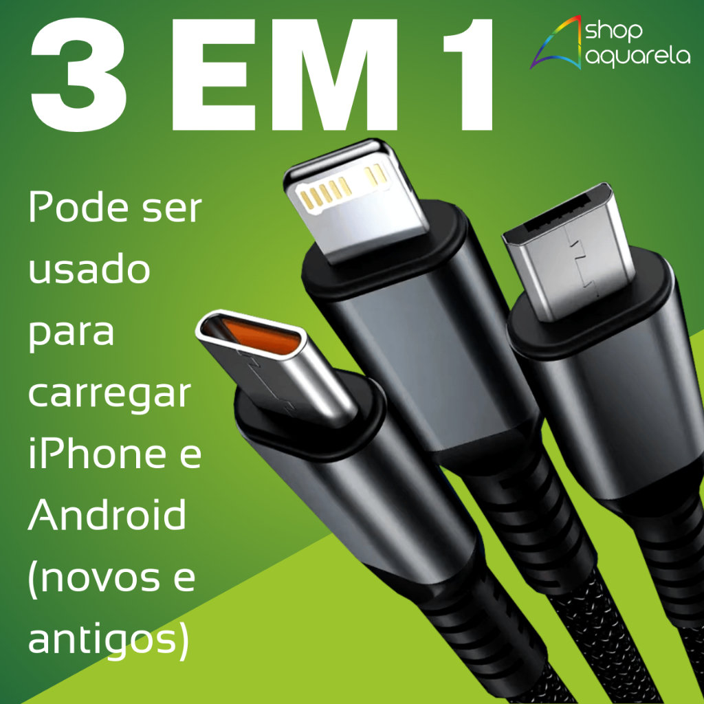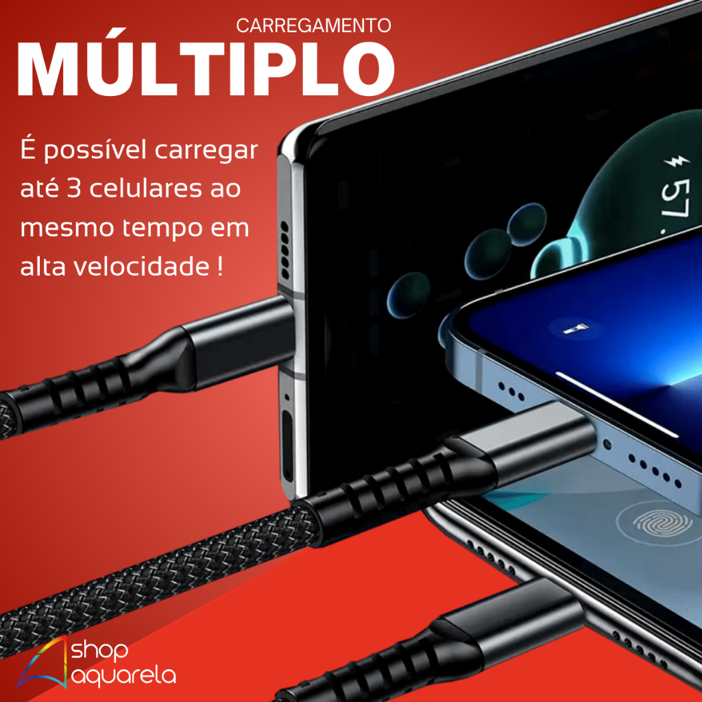 Cabo 3 em 1 Carregador Turbo 100W Tipo C Micro USB Lightning Carregamento Rápido