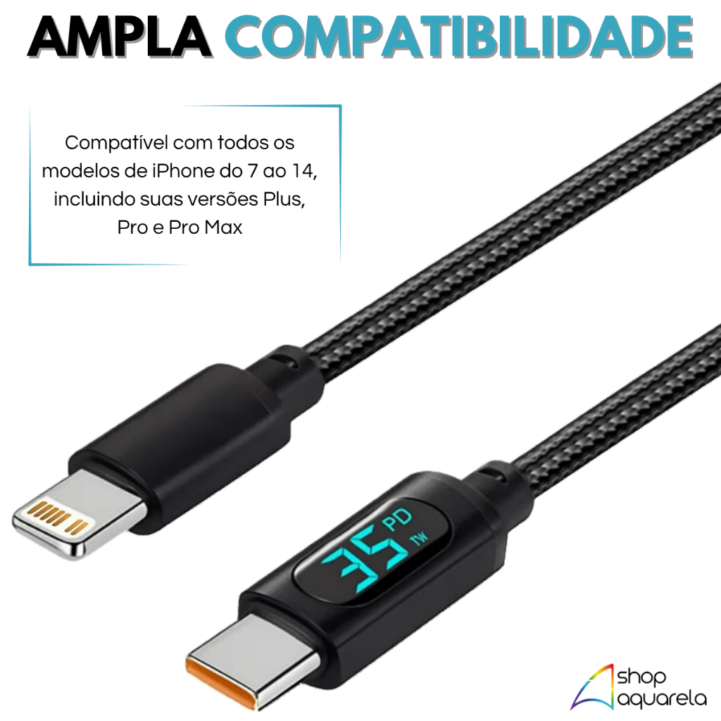 Cabo Tipo C Lightning 35W para iPhone USB-C 1 Metro Eletromex