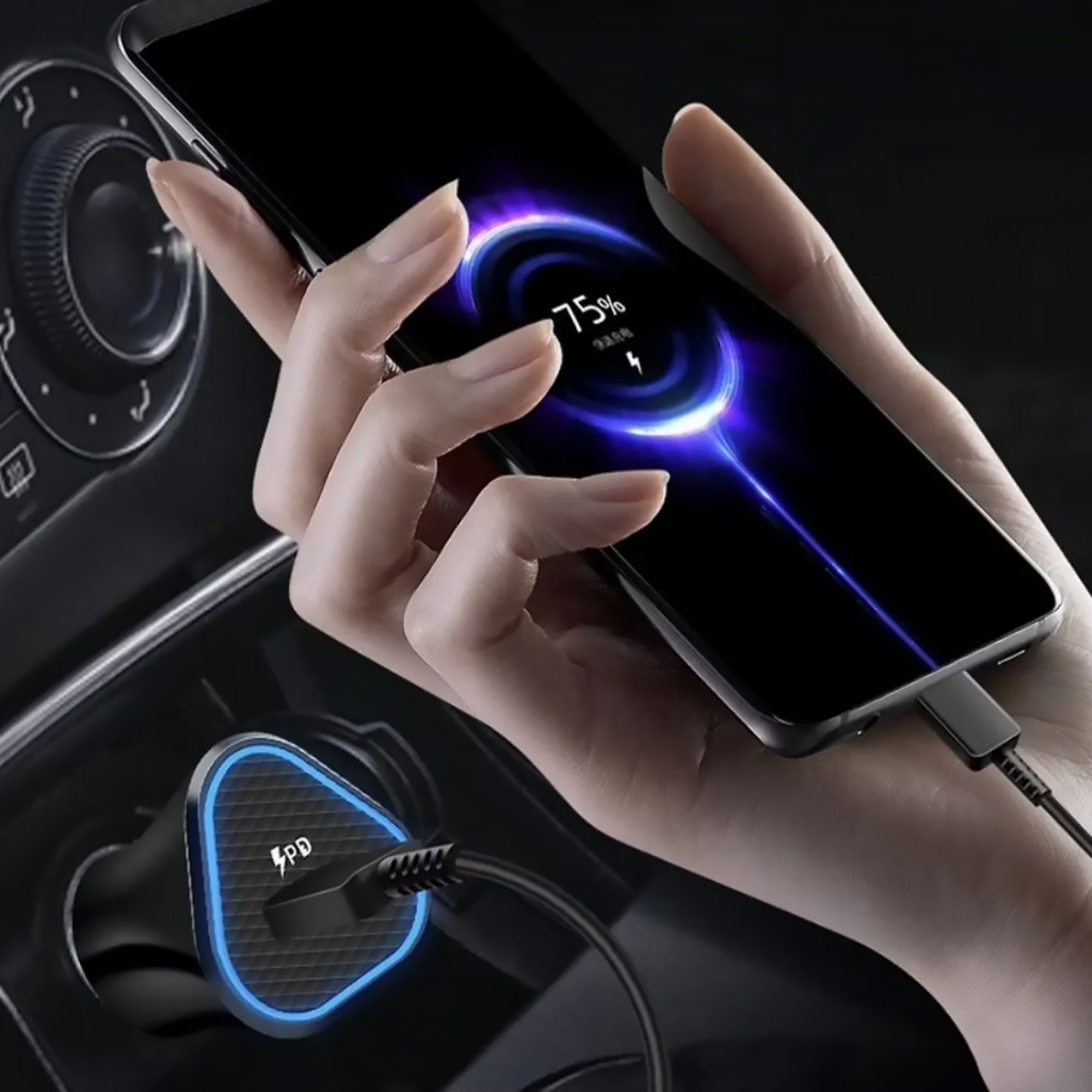 Carregador Veicular Turbo USB C 20W Lehmox Carregamento Rápido iPhone Android