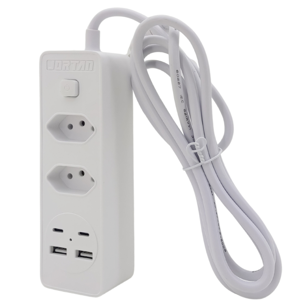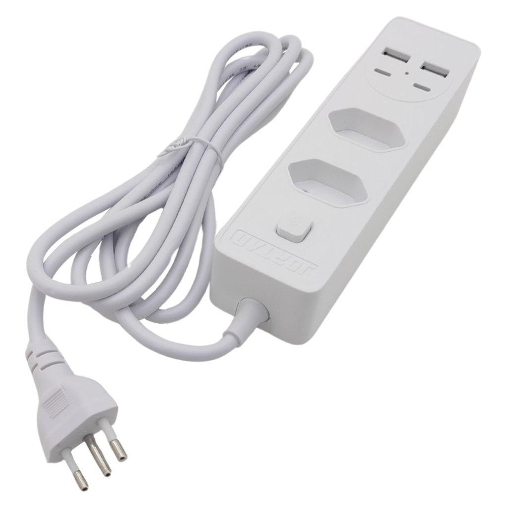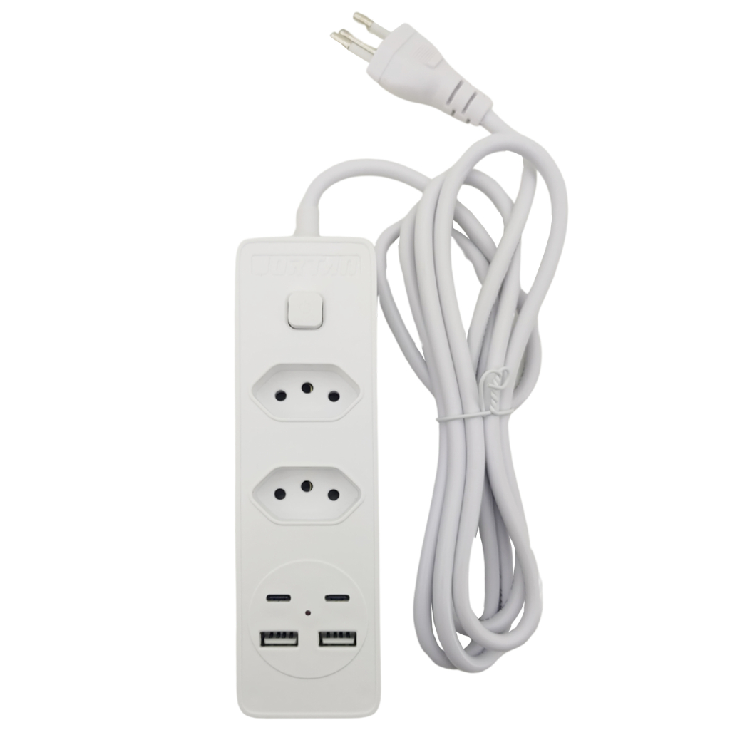 Filtro de Linha Extensão 2m com 2 Tomadas 2 Entradas USB 2 USB-C Inova