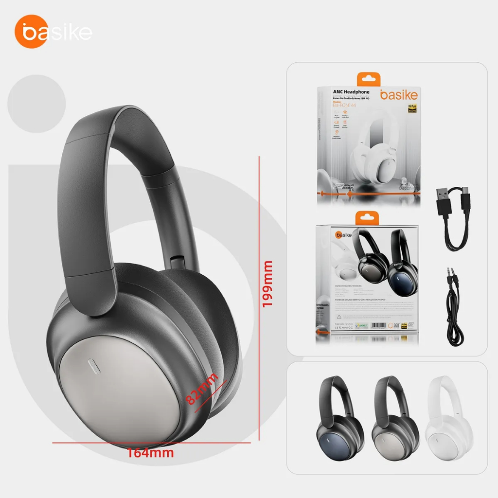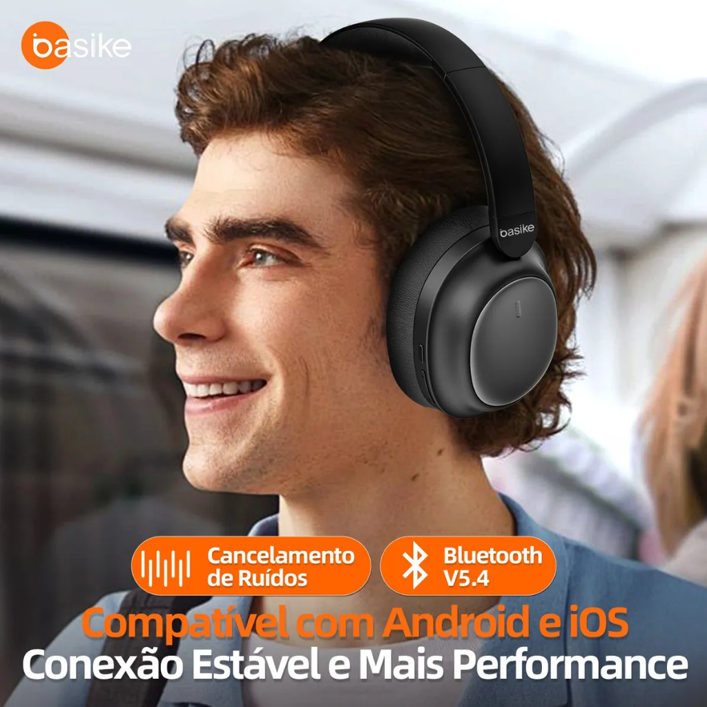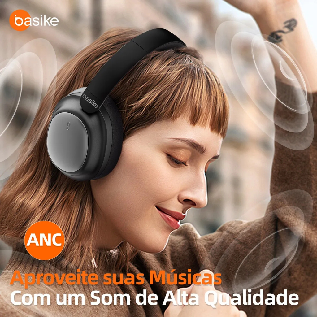 Fone De Ouvido Bluetooth Basike Cancelamento De Ruído Bateria Longa Duração