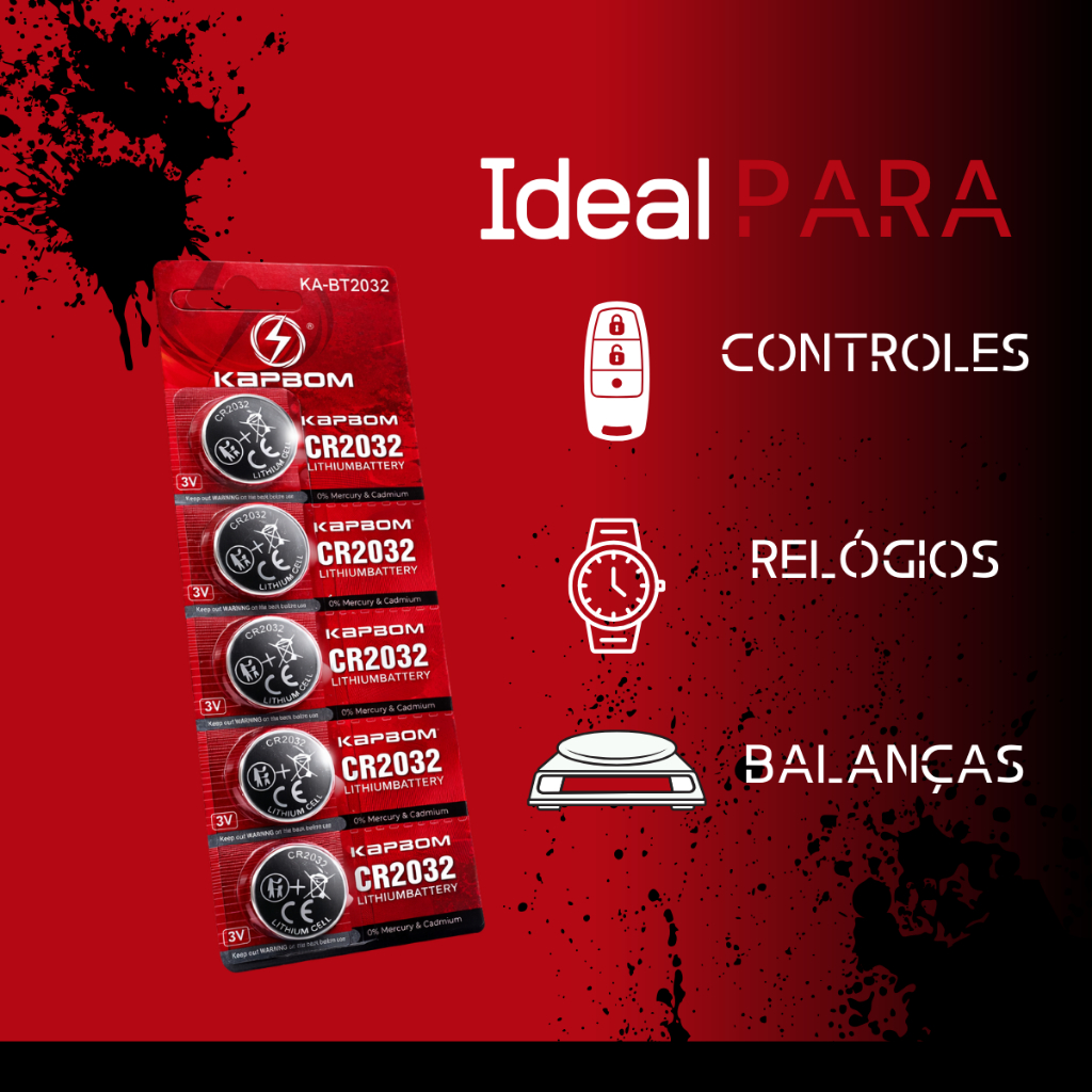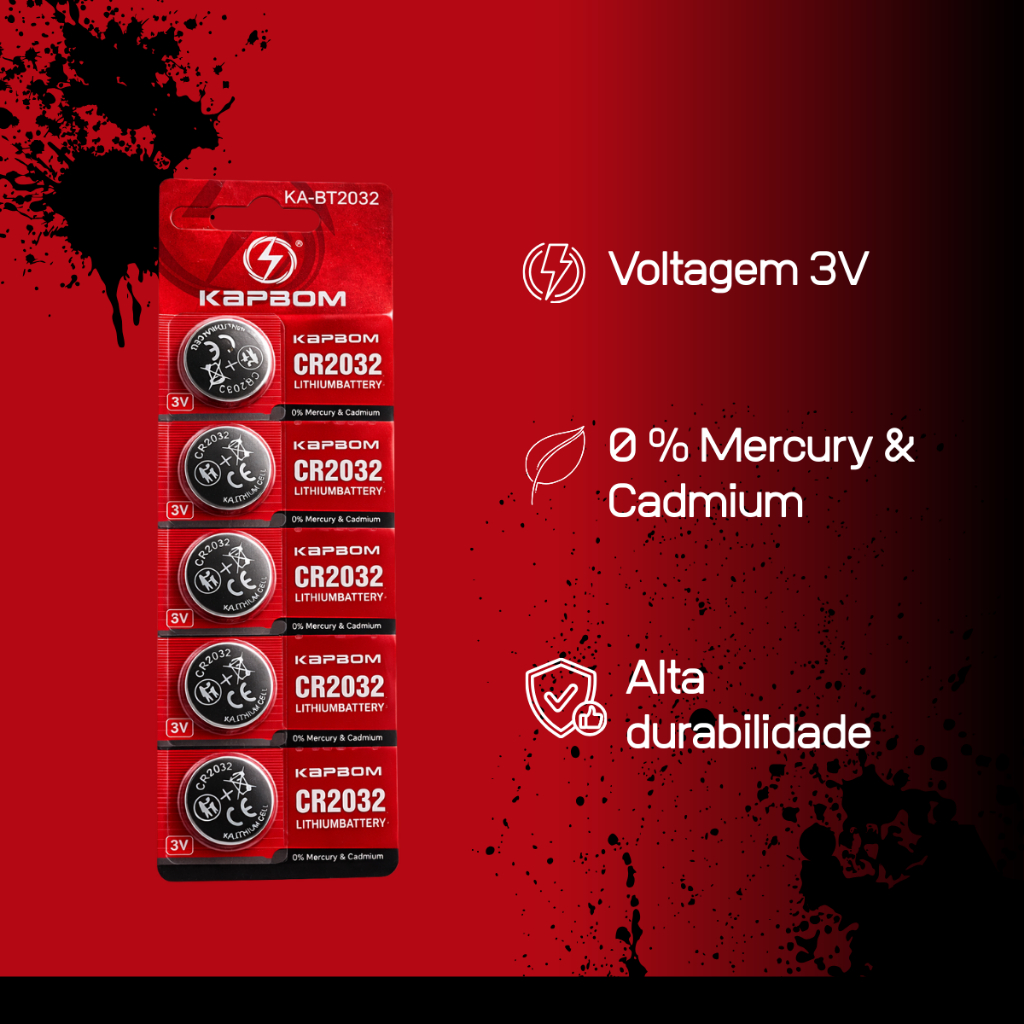 Bateria de Lítio CR2032 3V Pilha Botão Kit com 5 Unidades