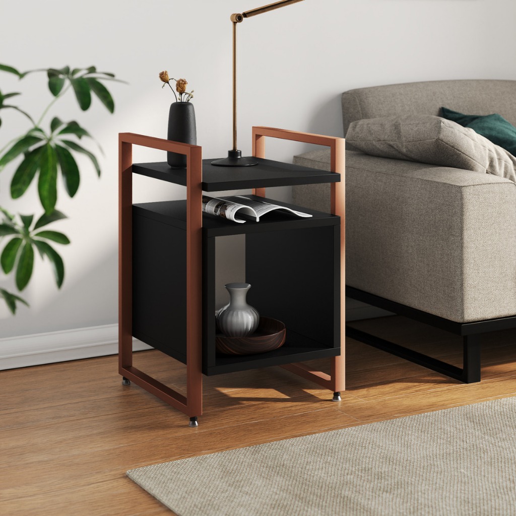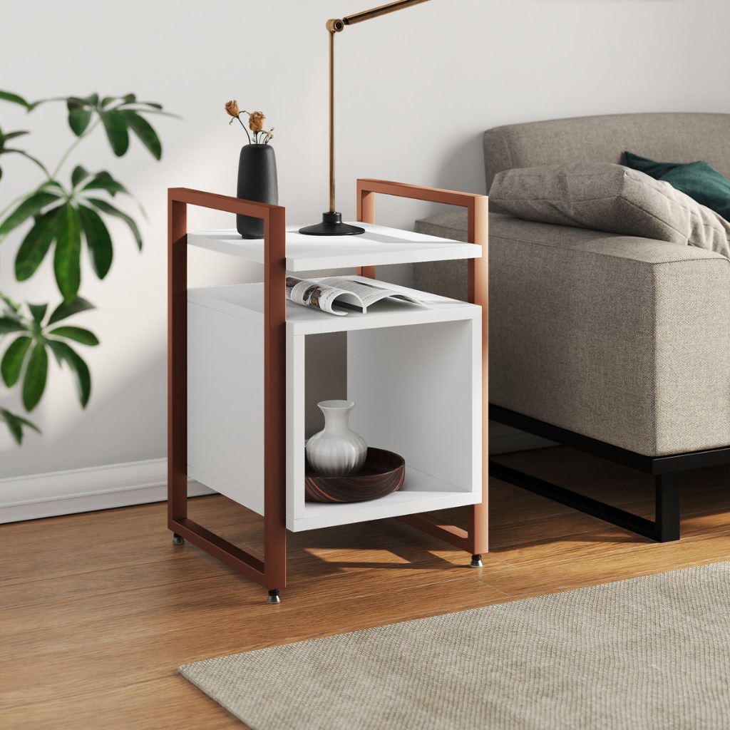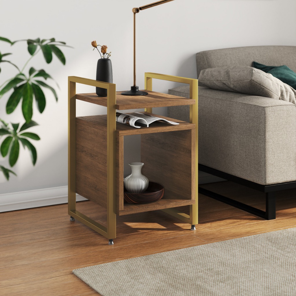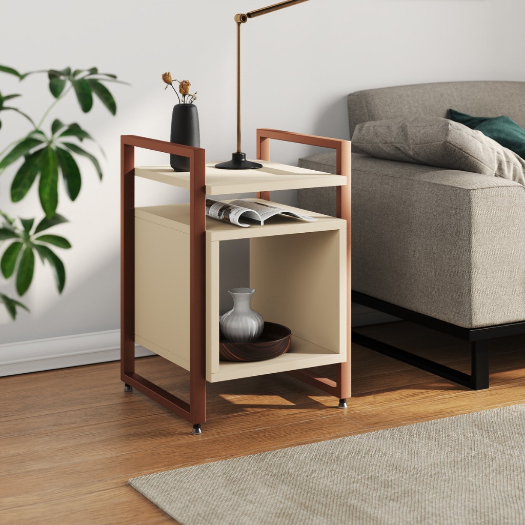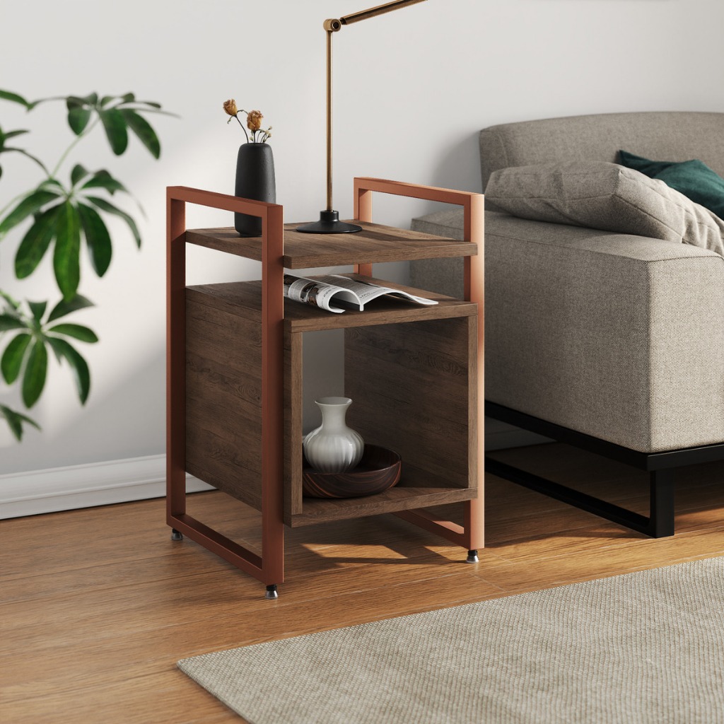 Mesa Cabeceira Marrocos De Apoio Lateral Cama para Quarto Base Ferro Tampo Madeira