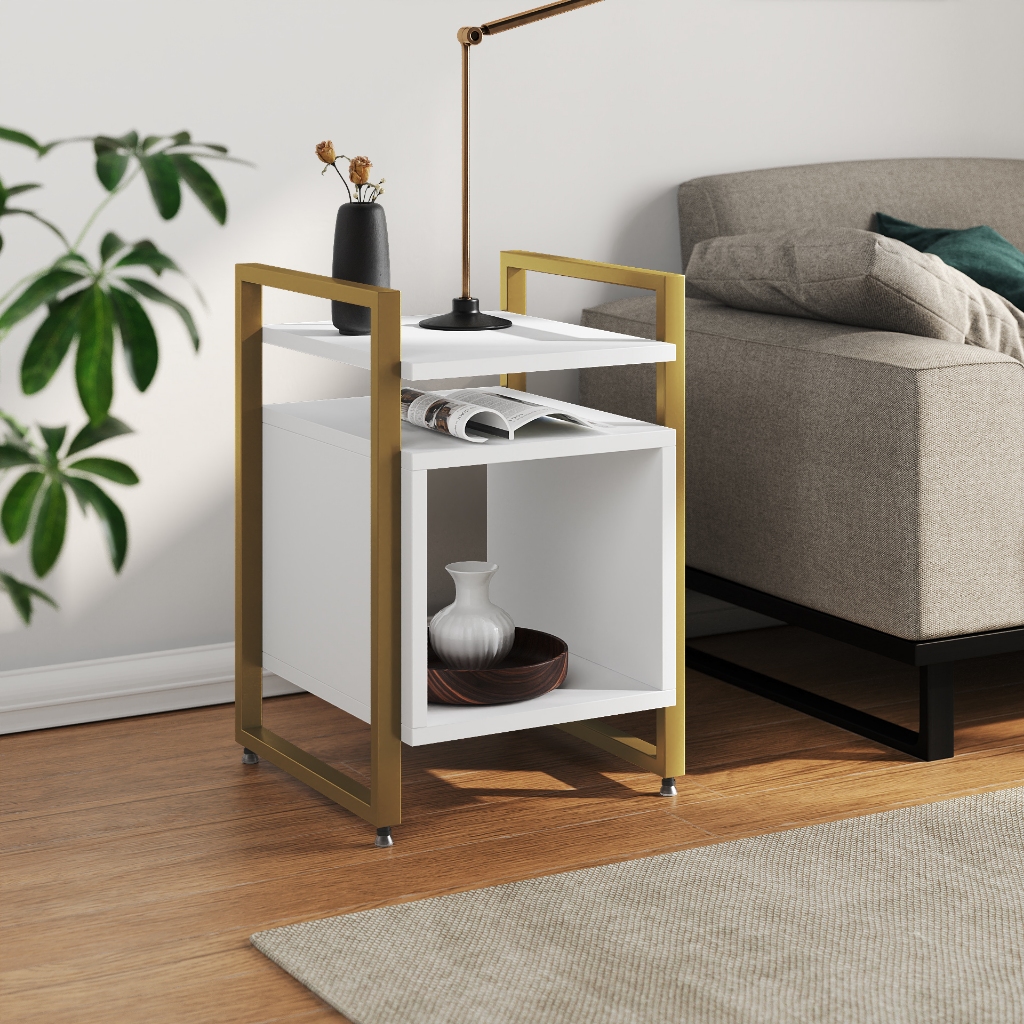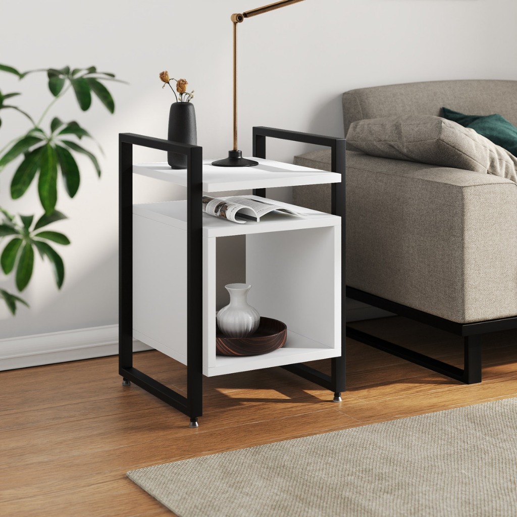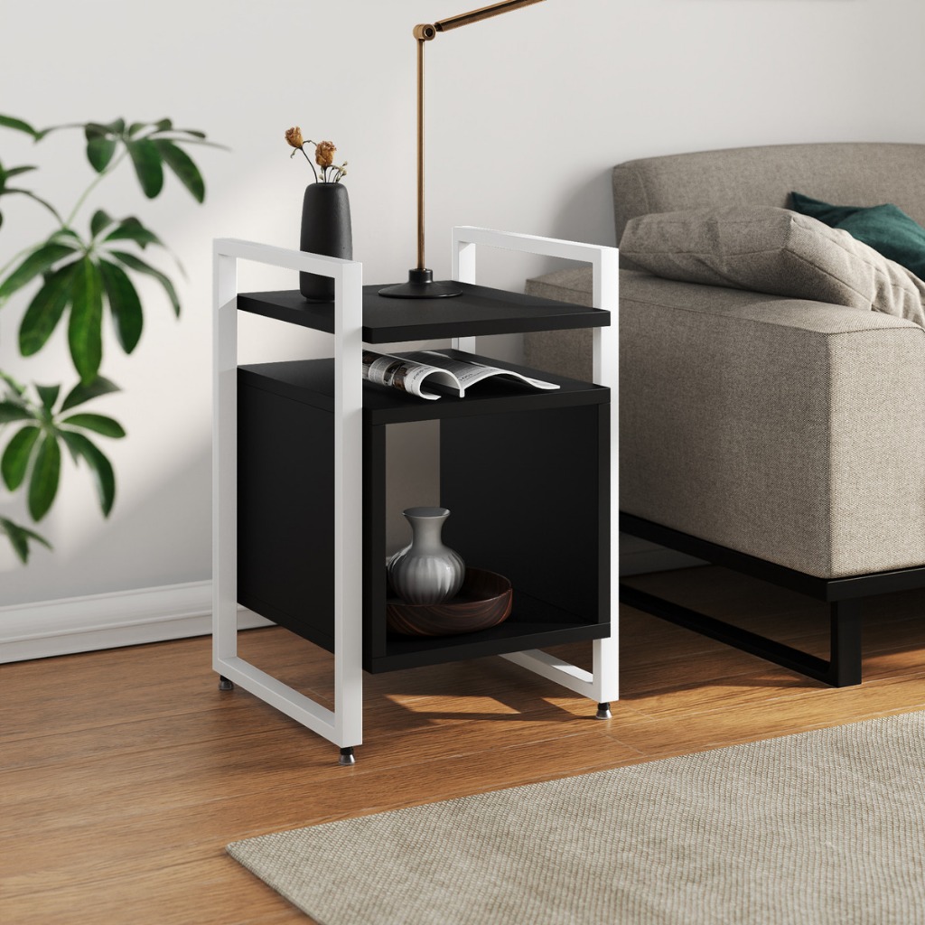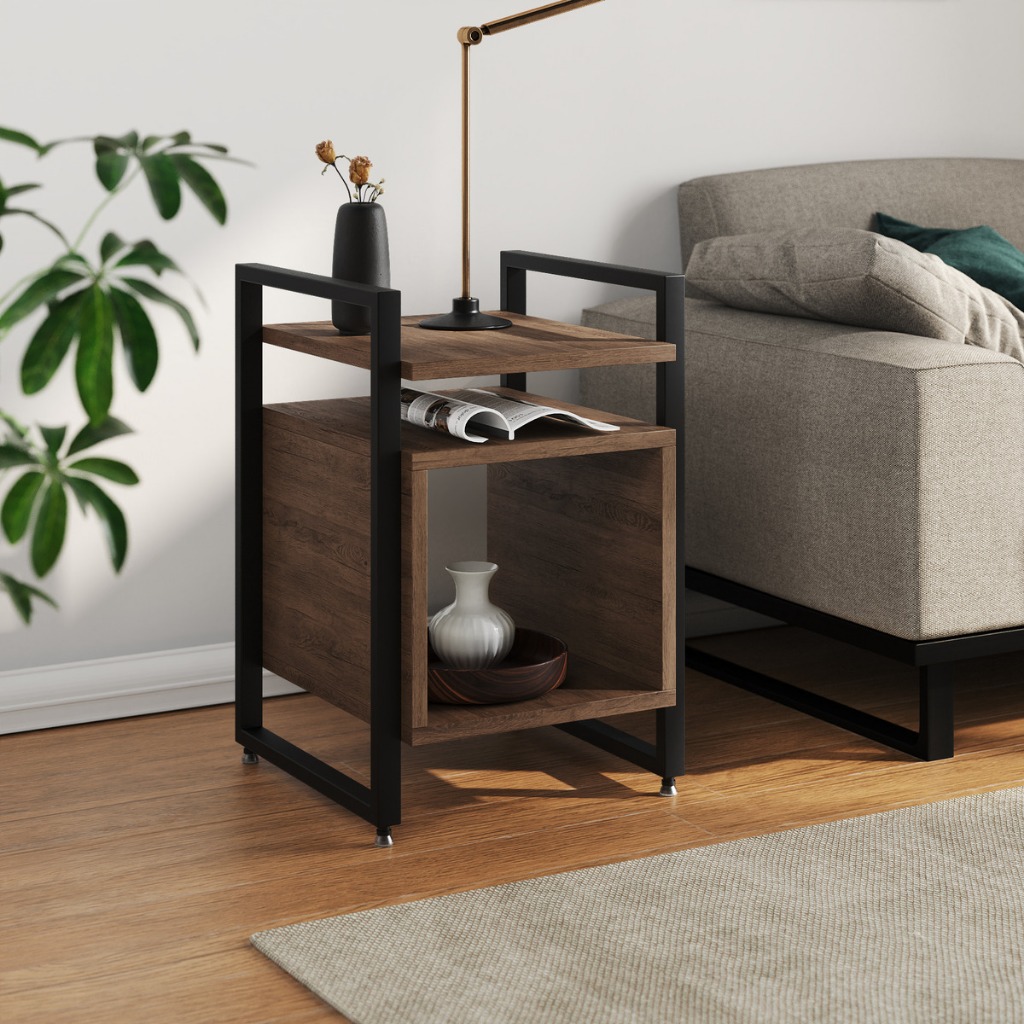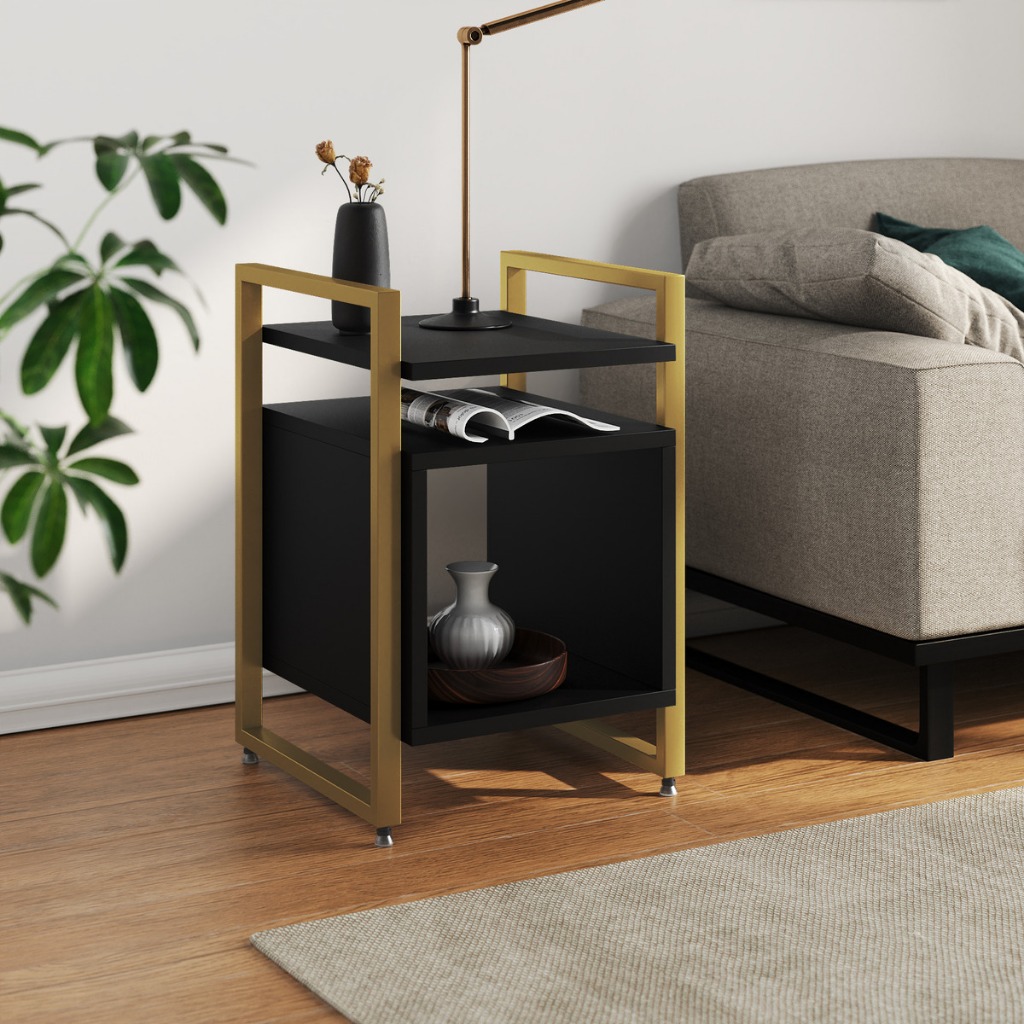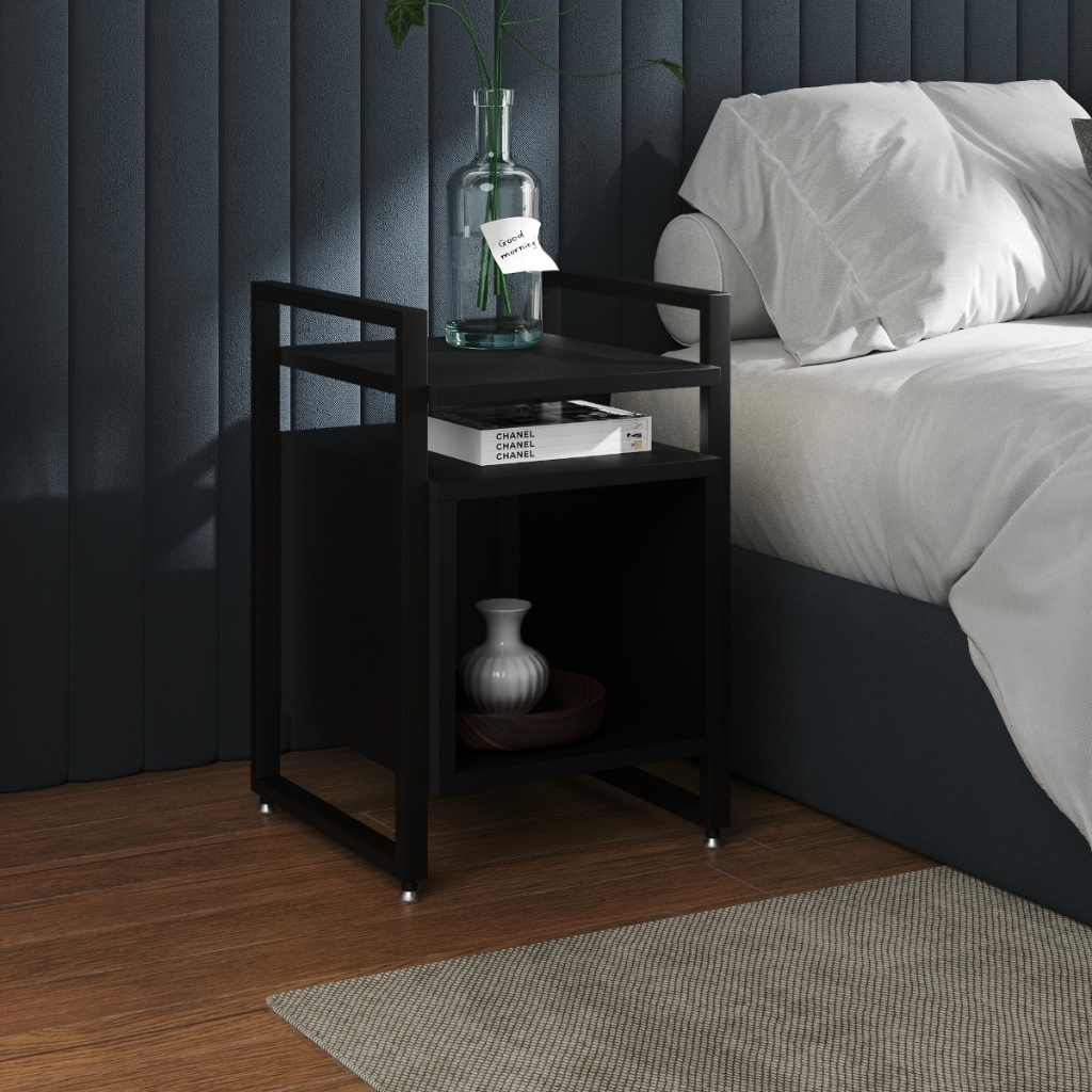 Mesa Cabeceira Marrocos De Apoio Lateral Cama para Quarto Base Ferro Tampo Madeira