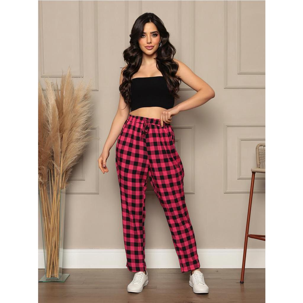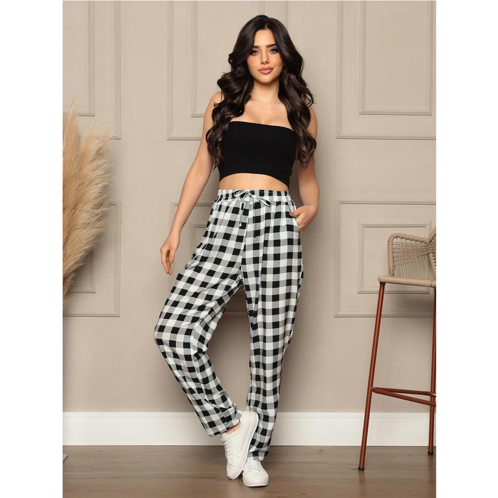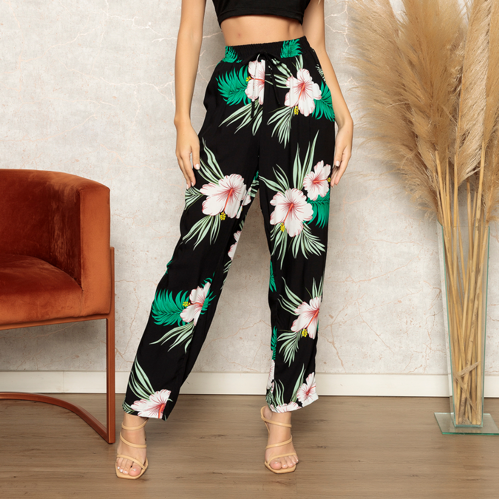 calças novas feminina com bolsos de viscose estampado verão leve e confortável