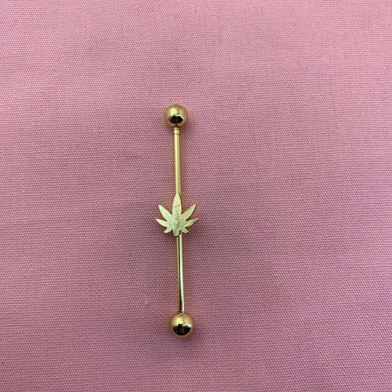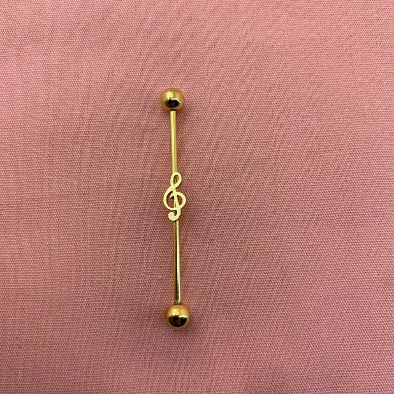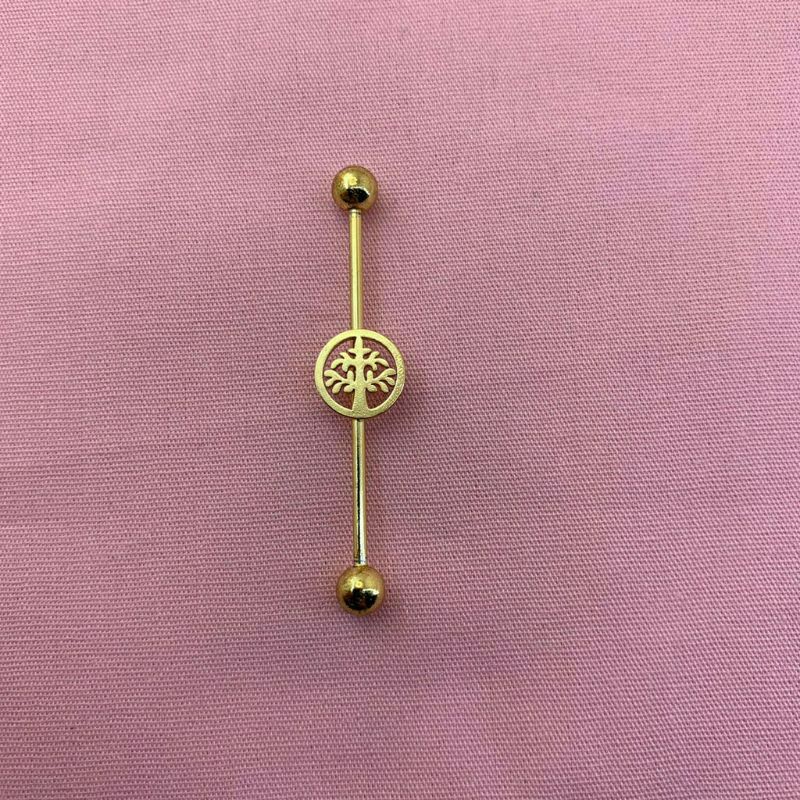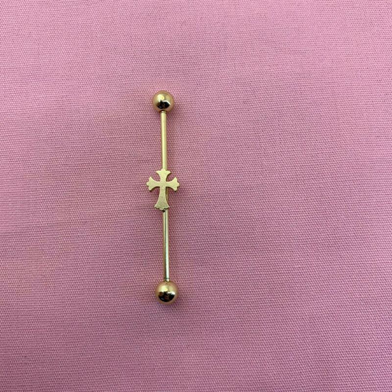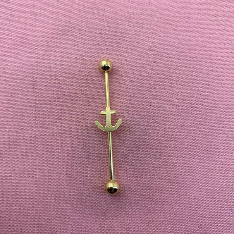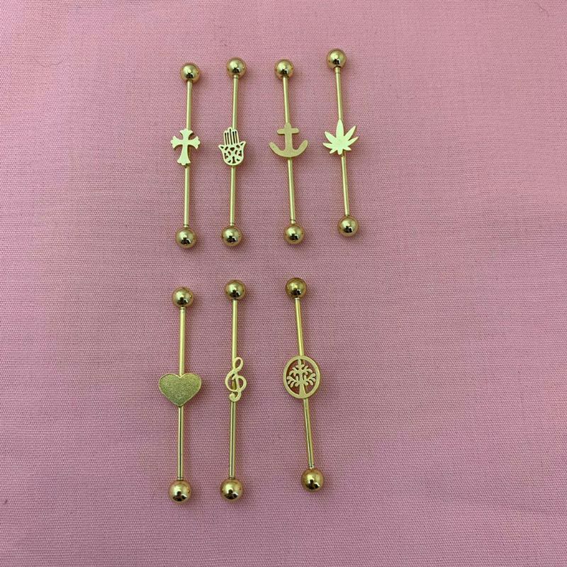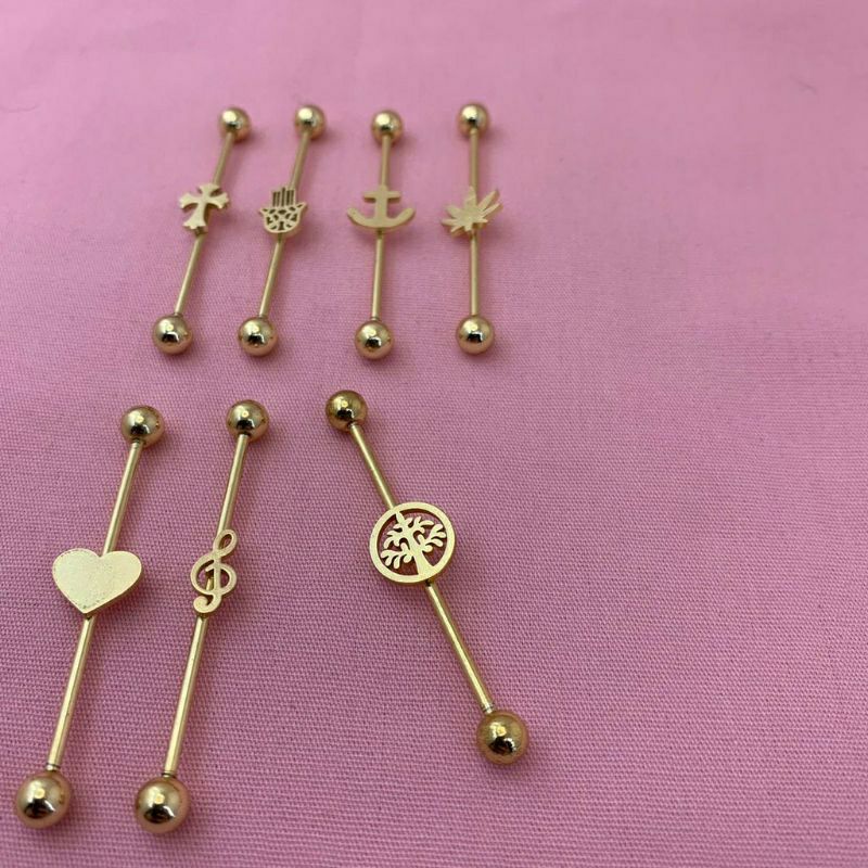 Piercing Transversal DOURADO em Aço Cirúrgico para Orelha