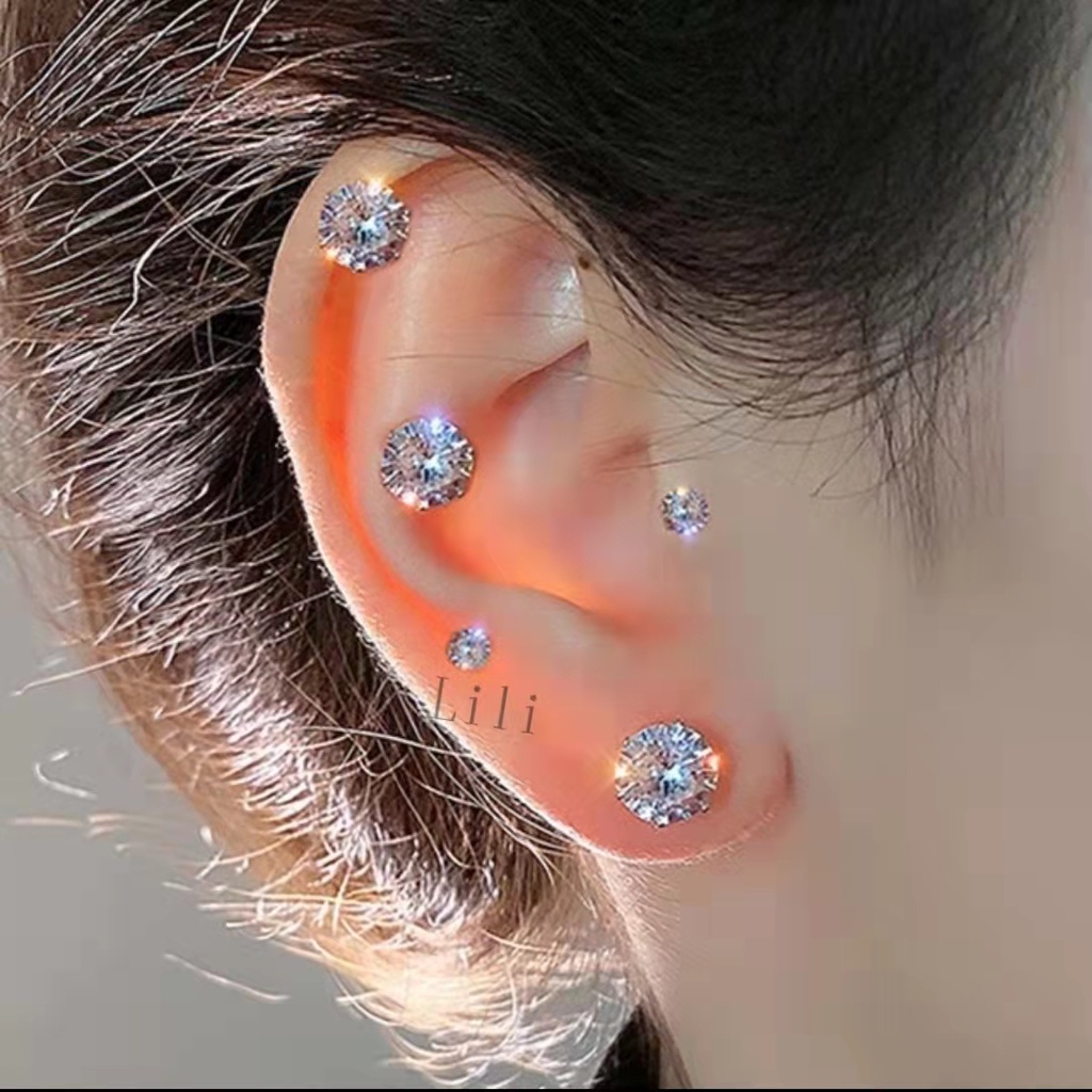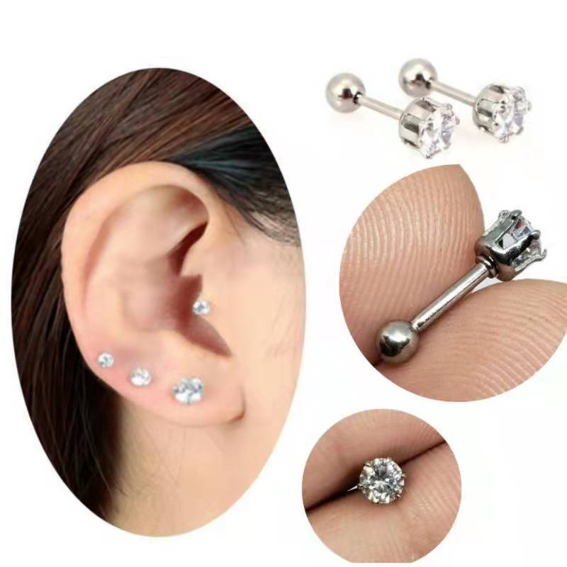 Kit 12 Piercing Tragus com brilho pedrinha 3mm de zirconia Aço Cirugico