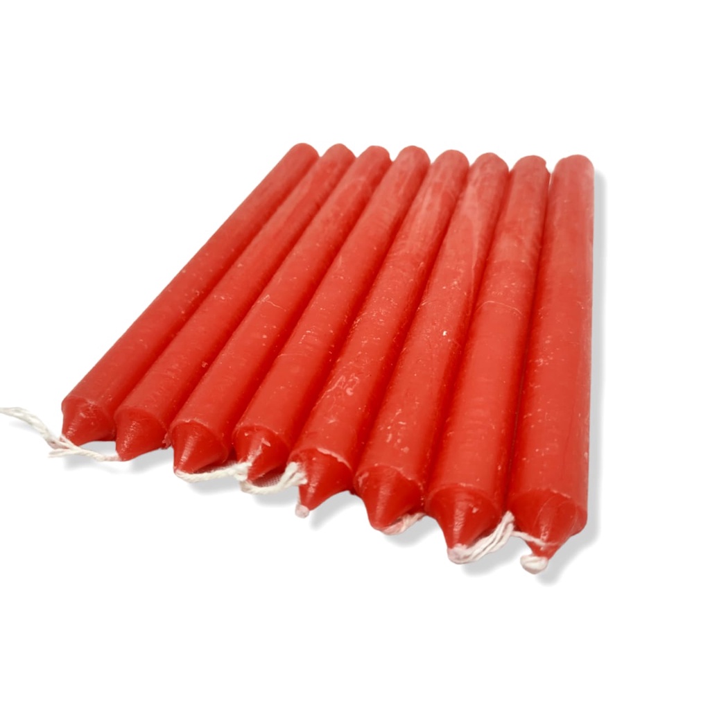 Vela Comum Palito Vermelha Kit Com 8 Unidades