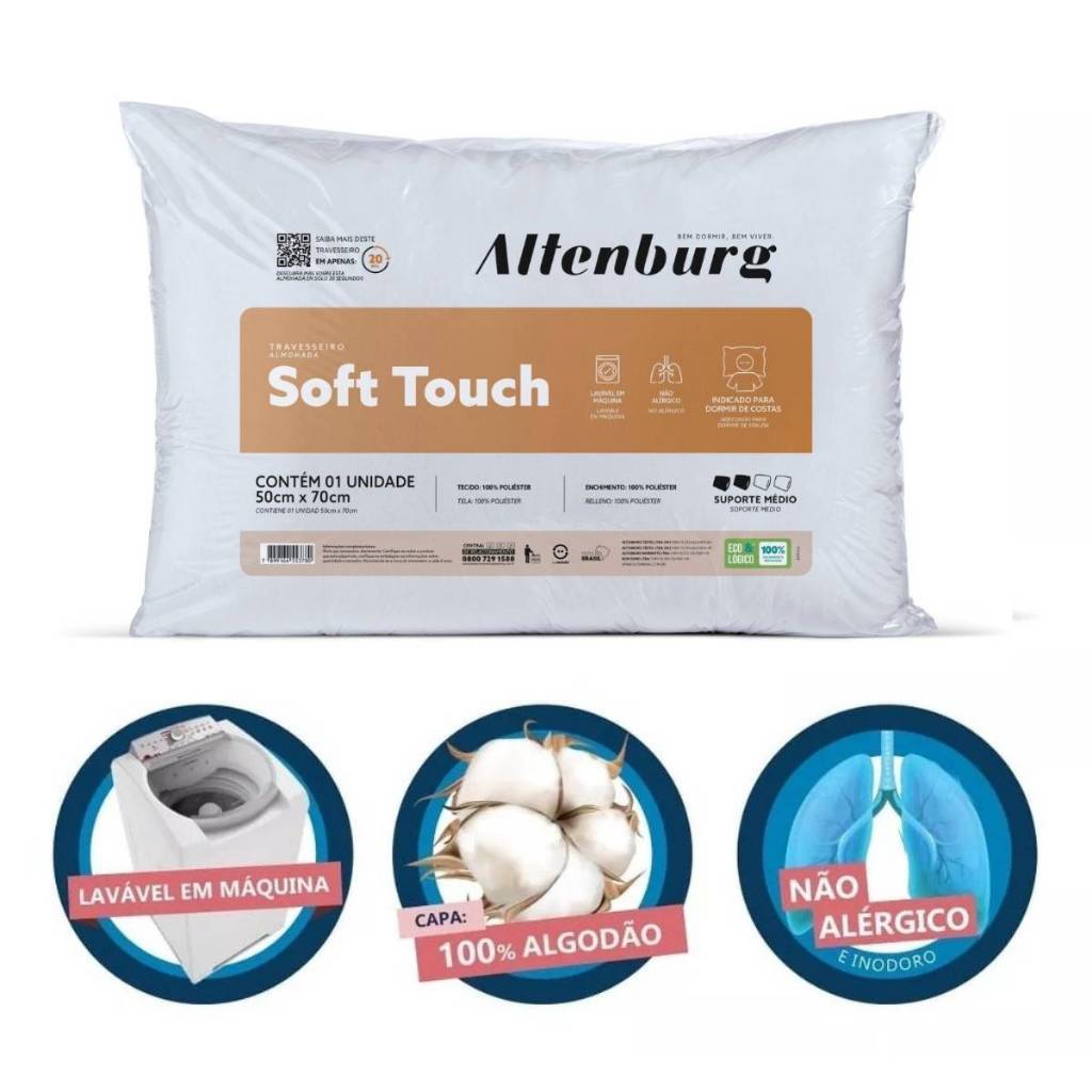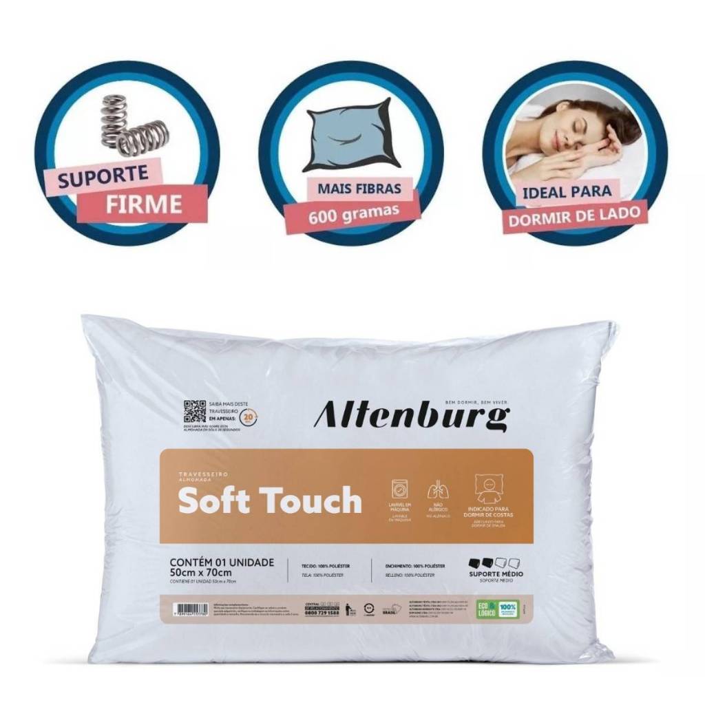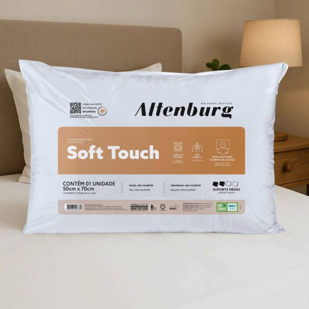Kit 2 Travesseiros Suporte Médio Soft Touch Altenburg Toque de Seda 50cm x 70cm