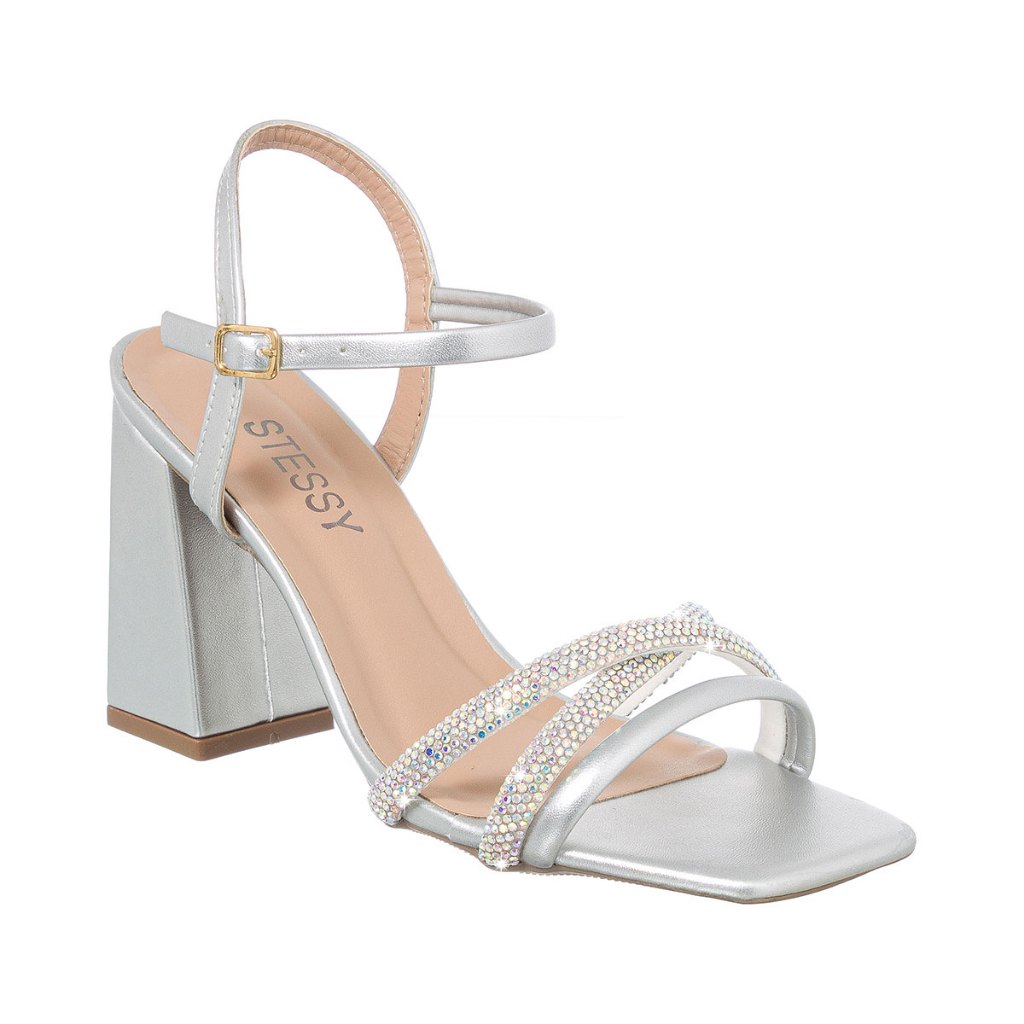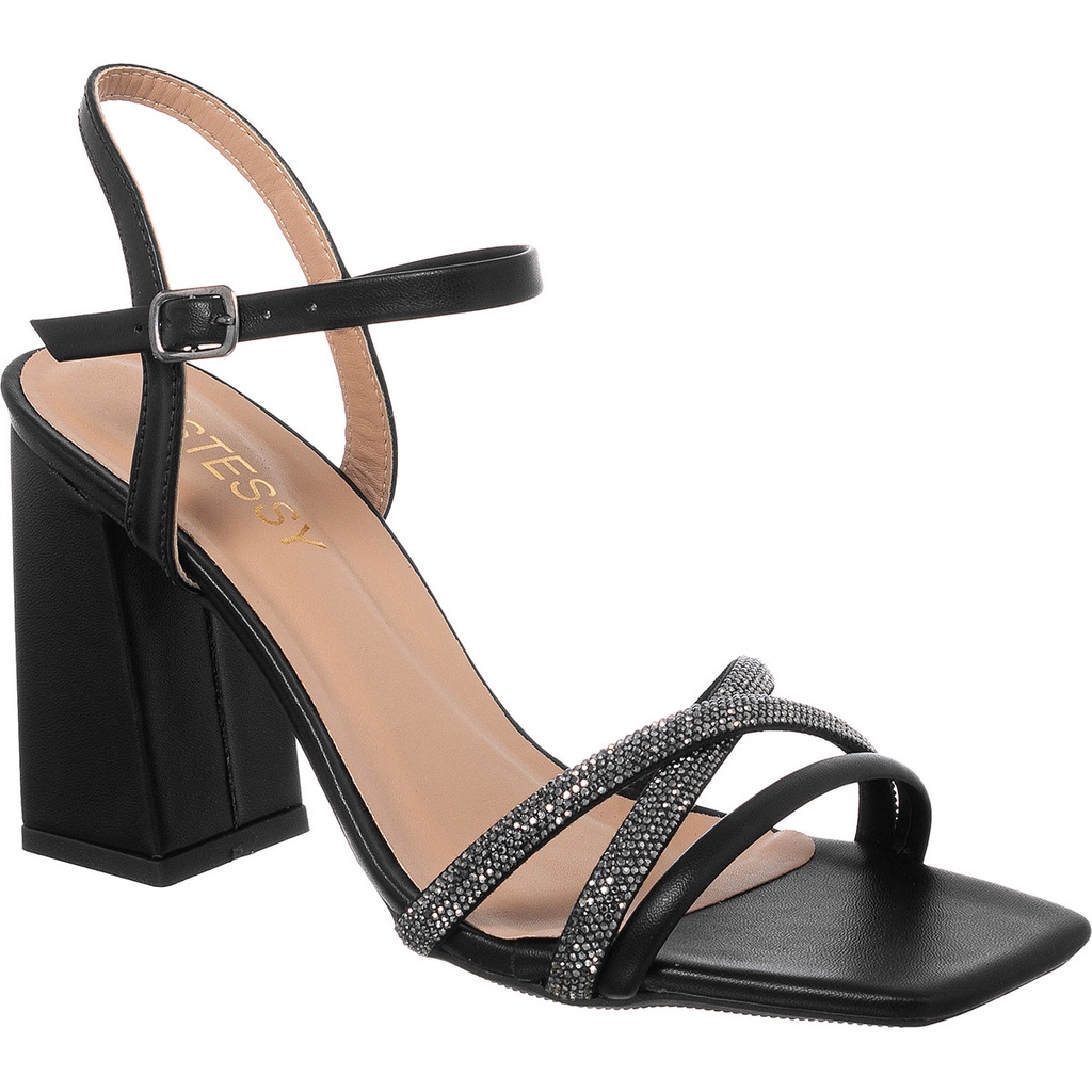 Sandália Feminina Festa Brilho Salto Alto Bloco Tiras Strass Brilho Confortável Luxo Leve Original