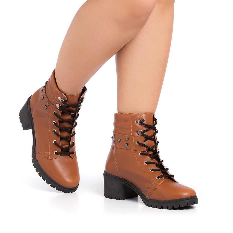 Coturno Feminino Stessy Shoes Bota Cano Curto Salto Baixo Tratorada Fashion Confortável Inverno