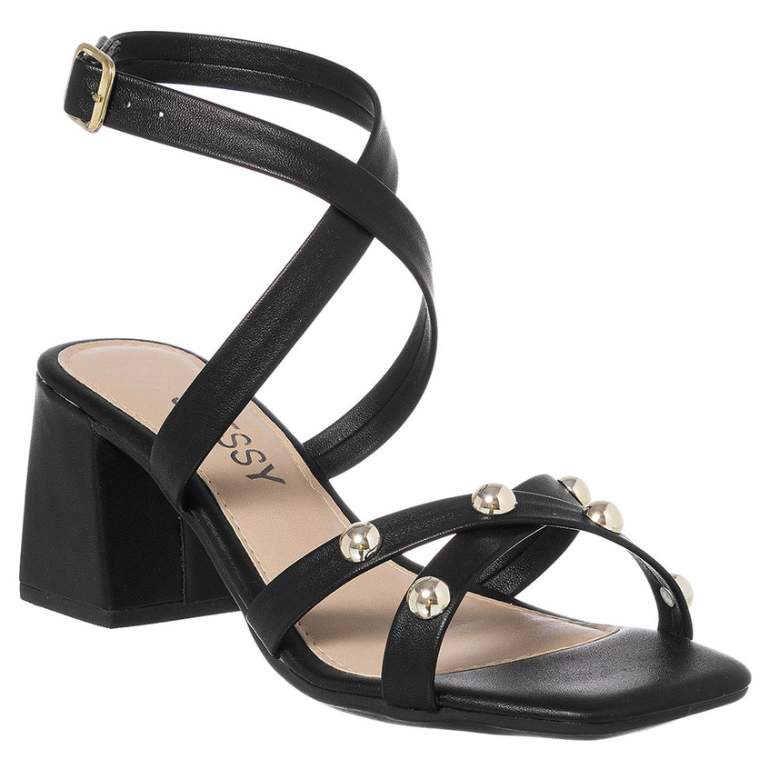 Sandália Feminina Stessy Shoes Casual Salto Médio Elegante Metalizado Confortável Leve Dia Dia Moda