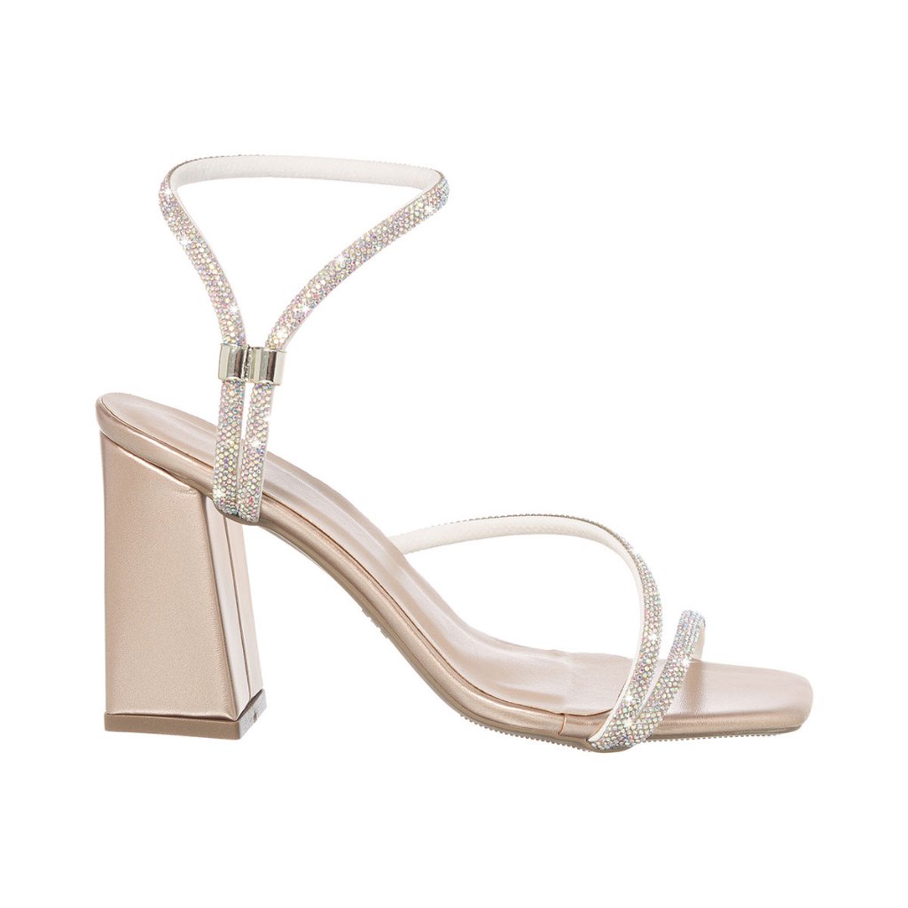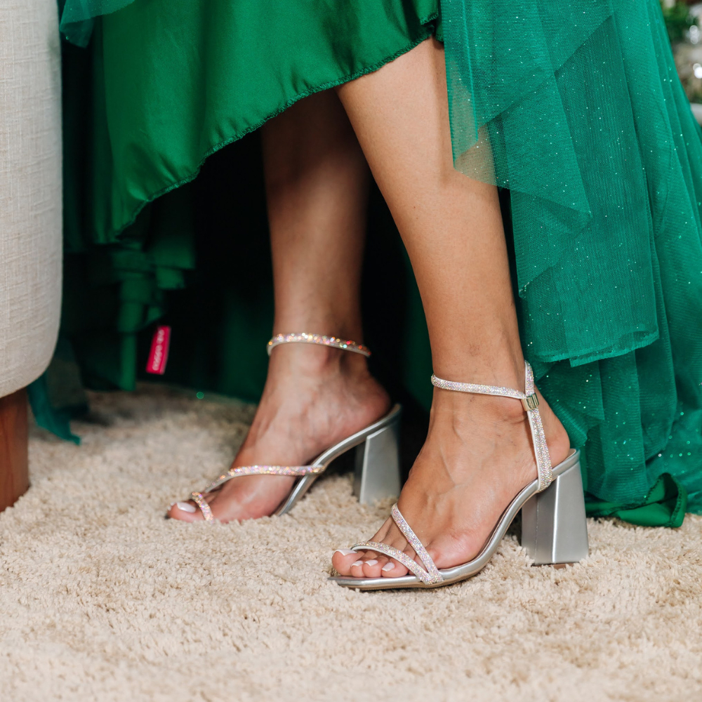 Sandália Feminina Stessy Shoes Salto Alto Grosso Strass Brilho Cristal Calce Fácil Confortável