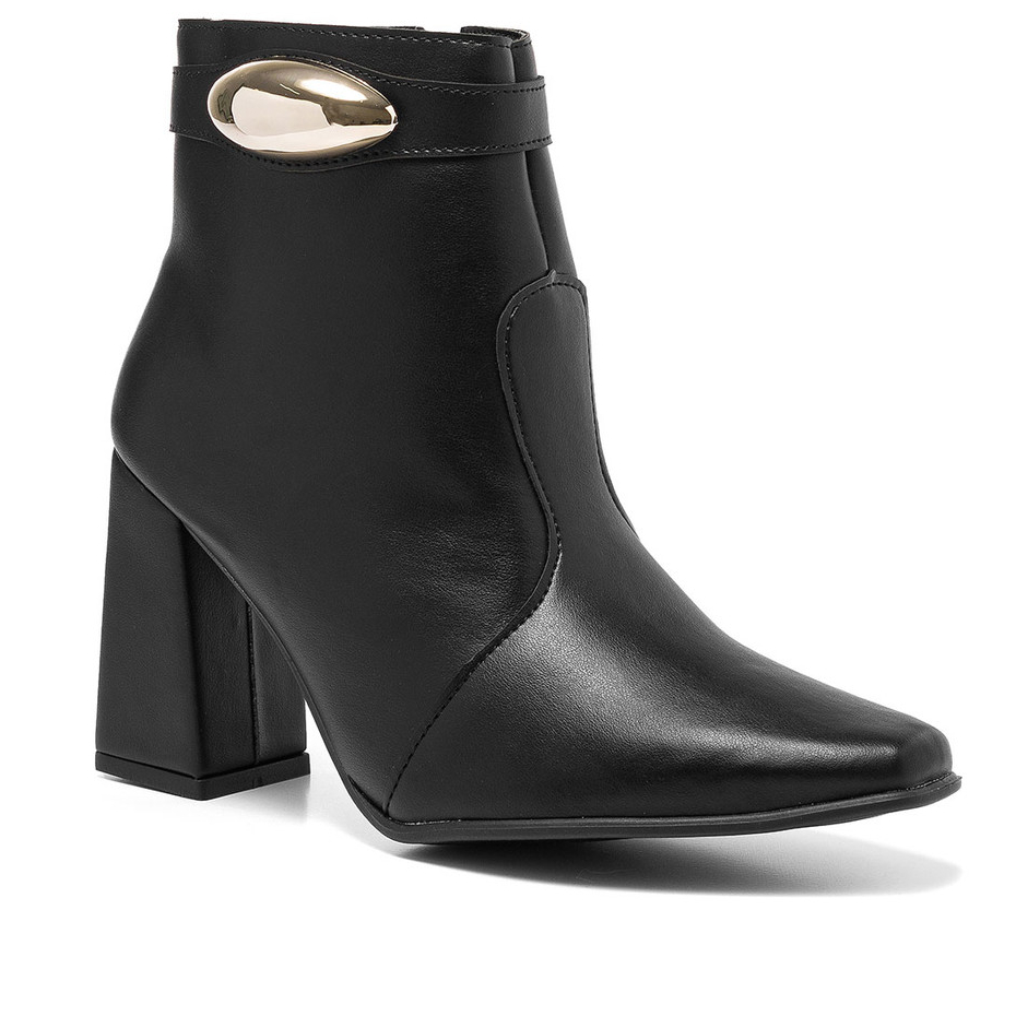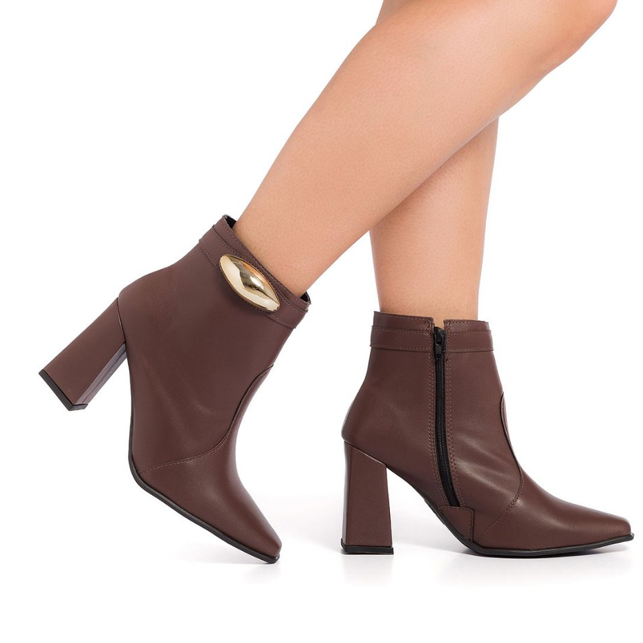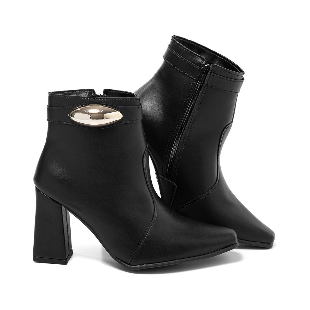Bota Feminino Cano Curto Lesma Metalizada Salto Bloco Casual Conforto Versátil Confortável Leve