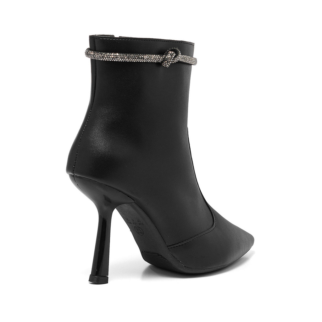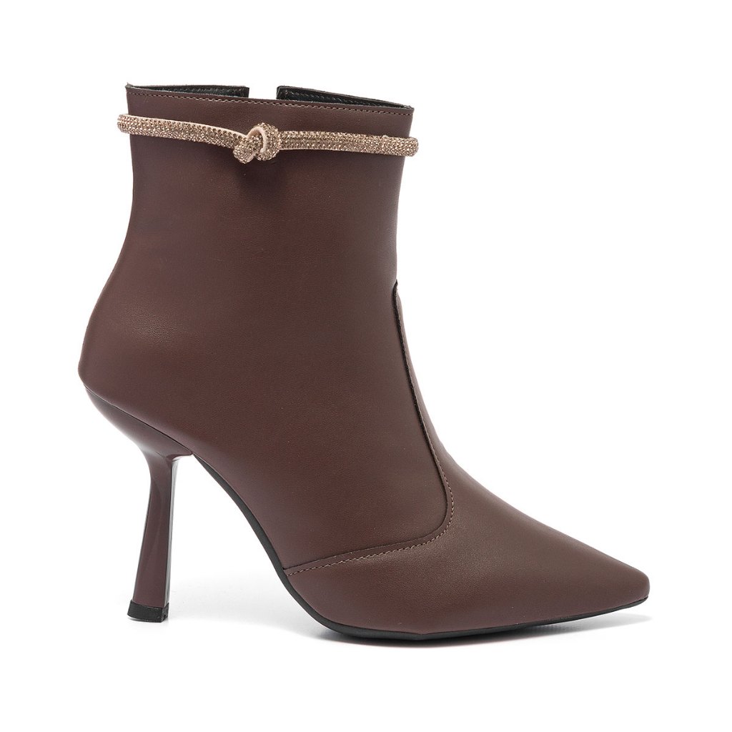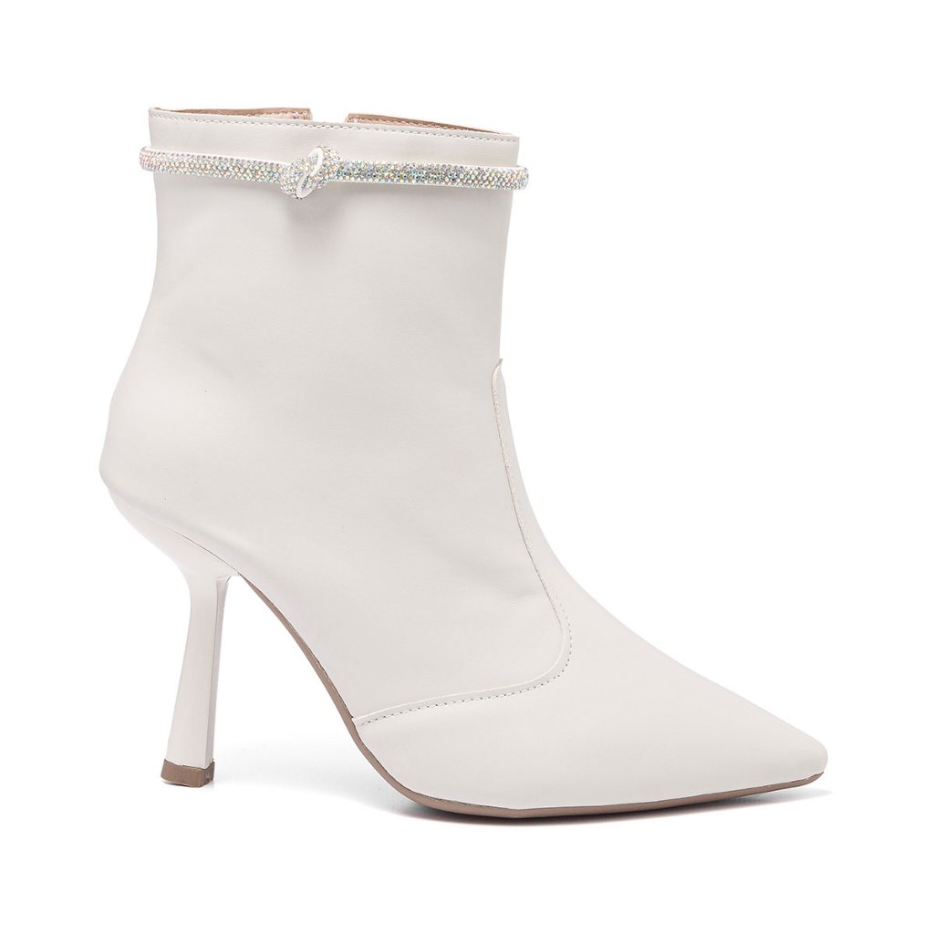 Bota Glamour Feminina Bico Fino Cano Curto Salto Alto Strass Brilho Sofisticado 6005-107