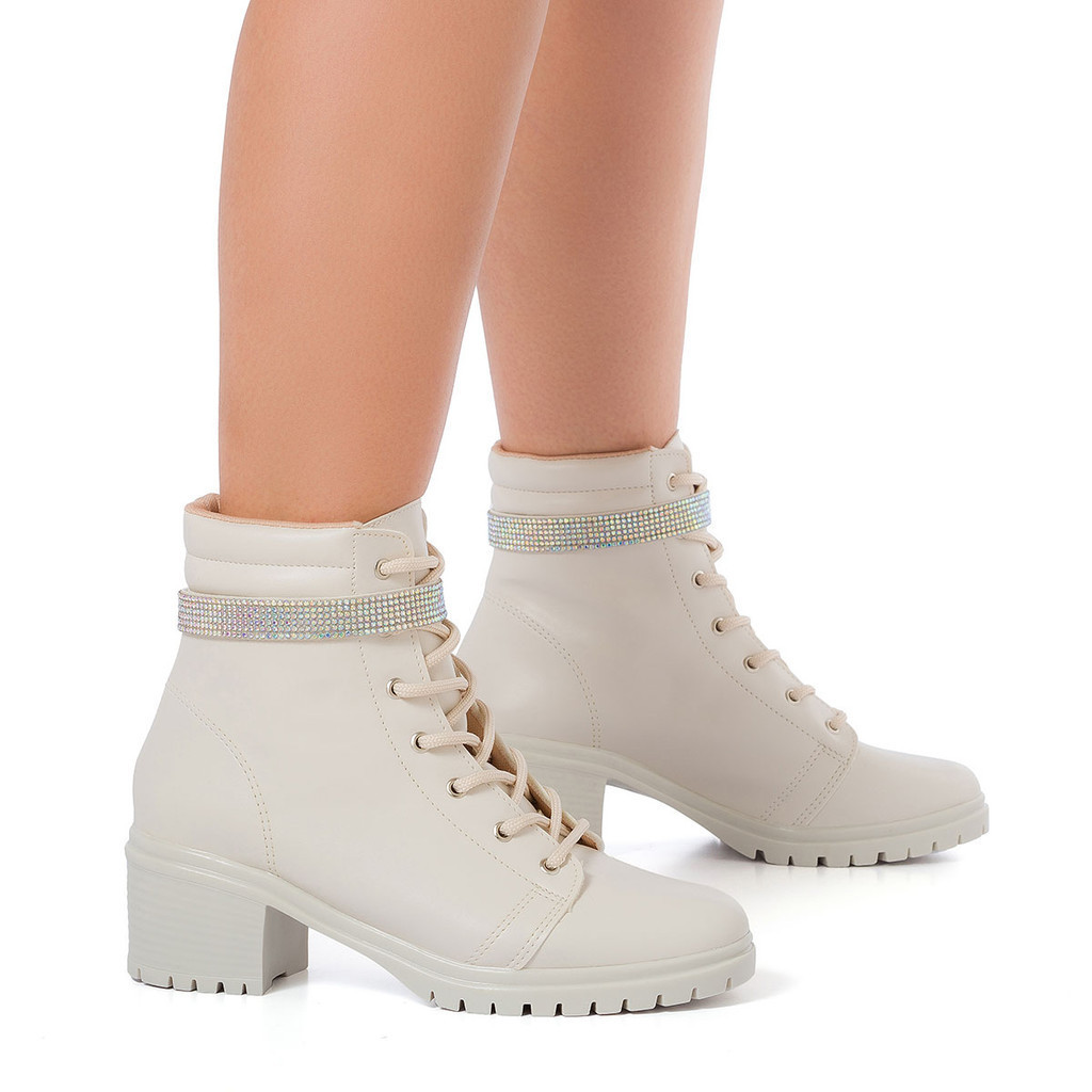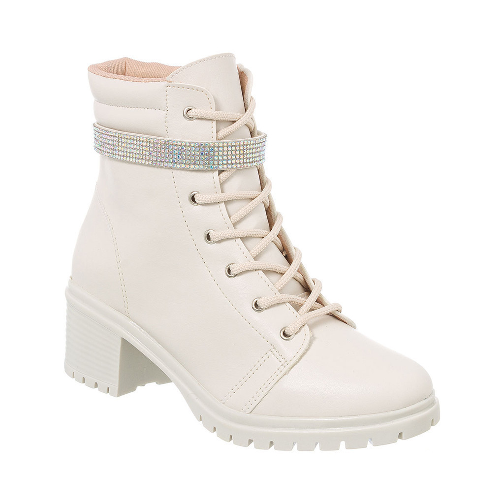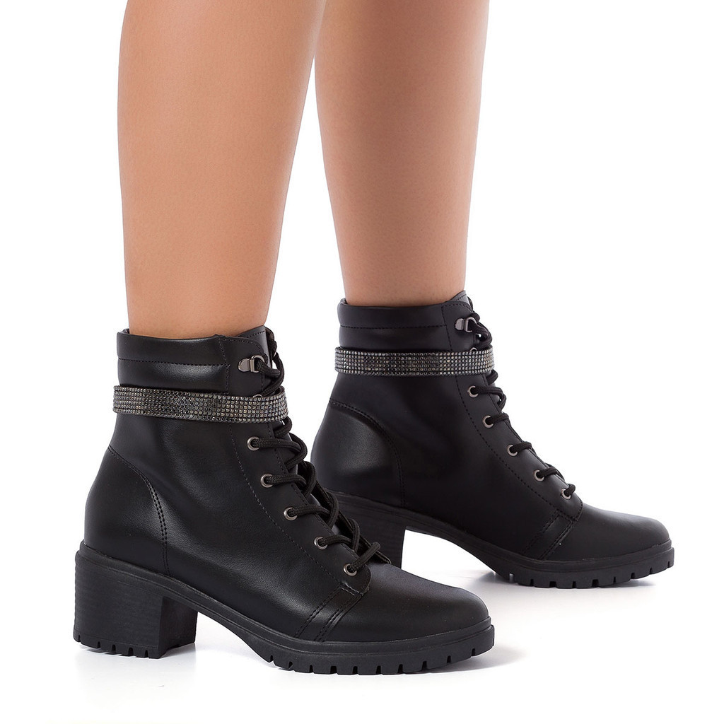 Coturno Bota Feminina Strass Brilho Cristal Sola Trarorada Cano Curto Conforto S4988-0027
