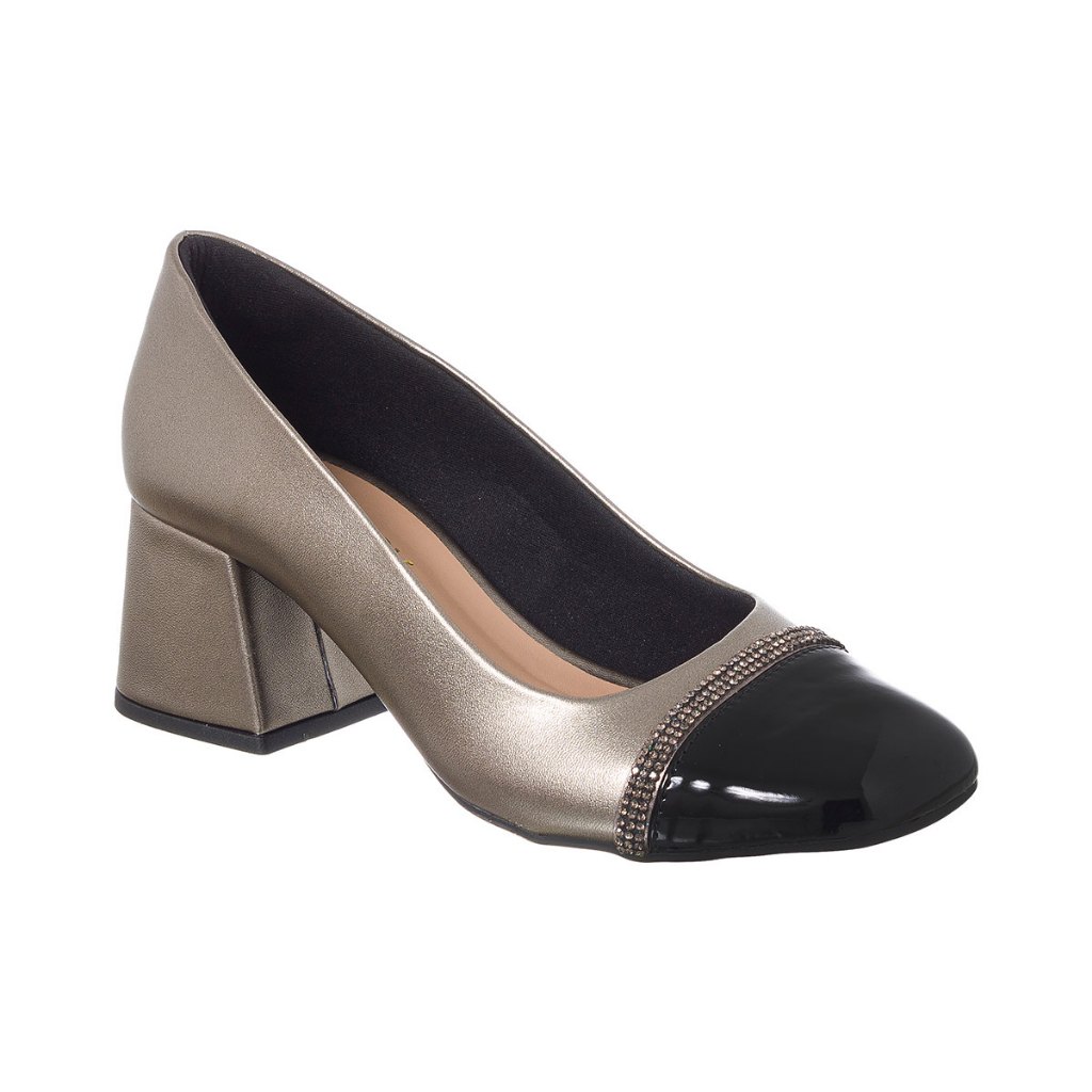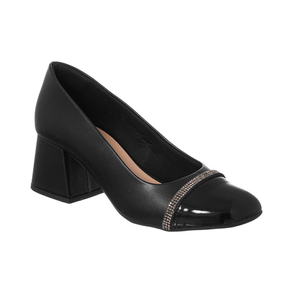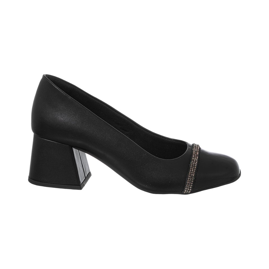 Scarpin Feminino Boneca Salto Bloco Bico Quadrado Strass Romântico Confortável Leve Casual