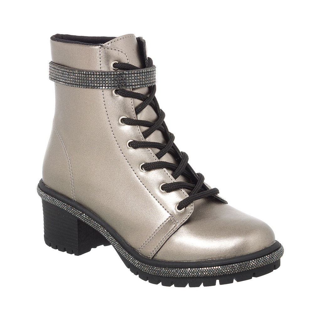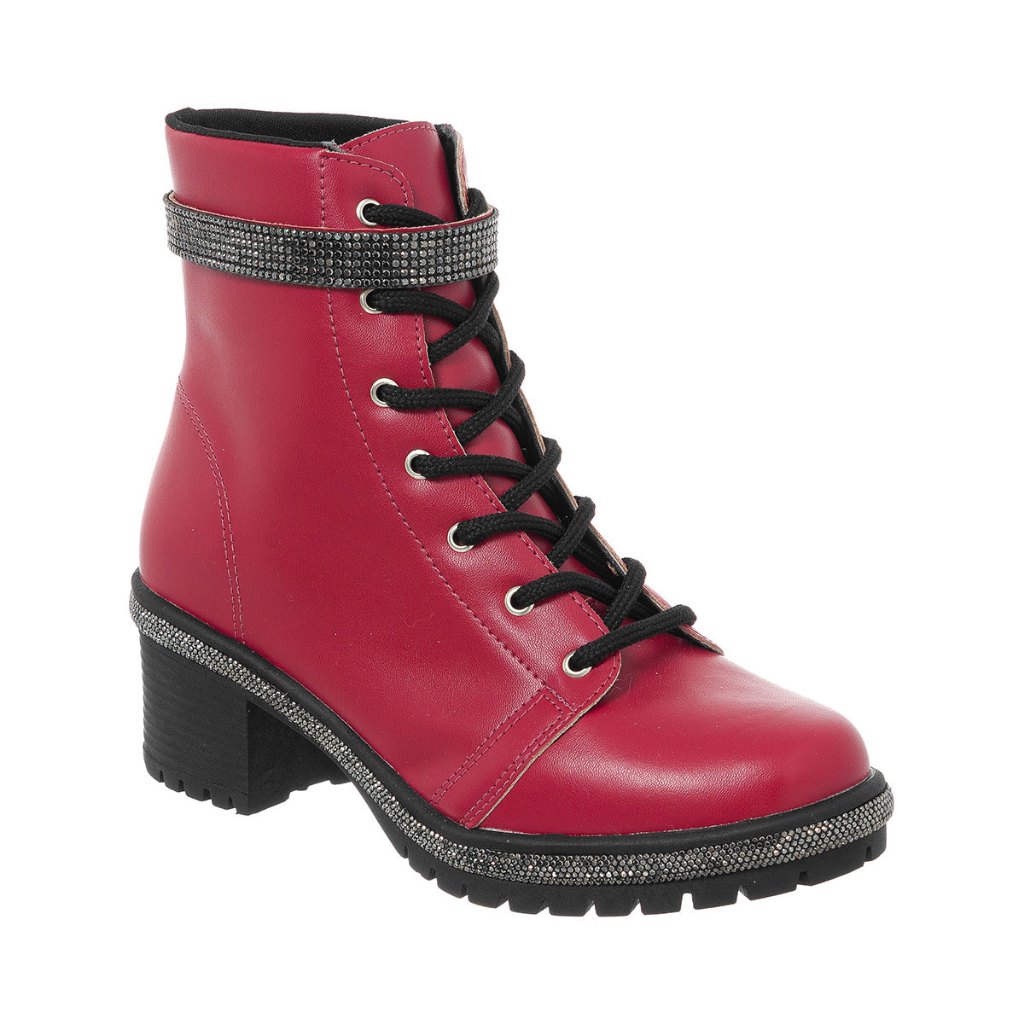 Bota Coturno Feminino Strass Brilho Cano Curto Salto Tratorado Confortável leve Festas inverno