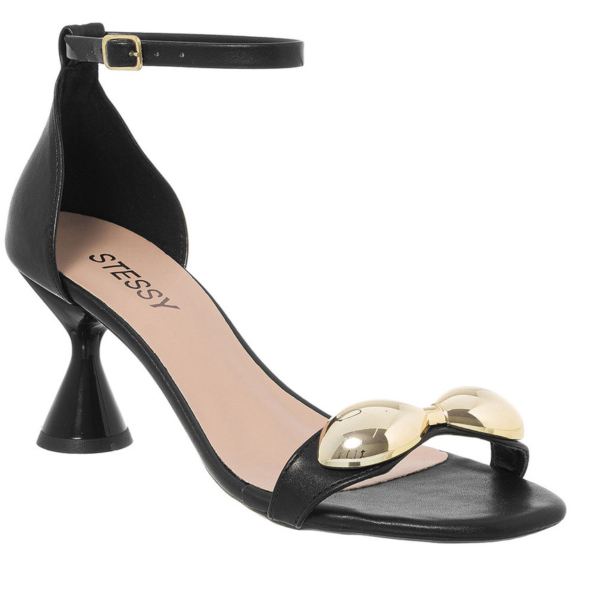 Sandália Feminina Stessy Shoes Salto Baixo Rolha Geométrico Enfeite Laço Casual Confortável Marrom