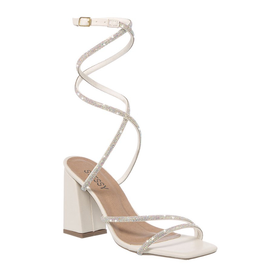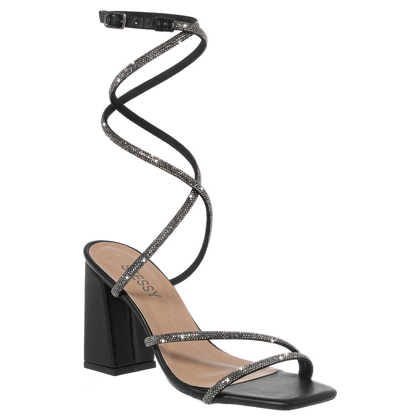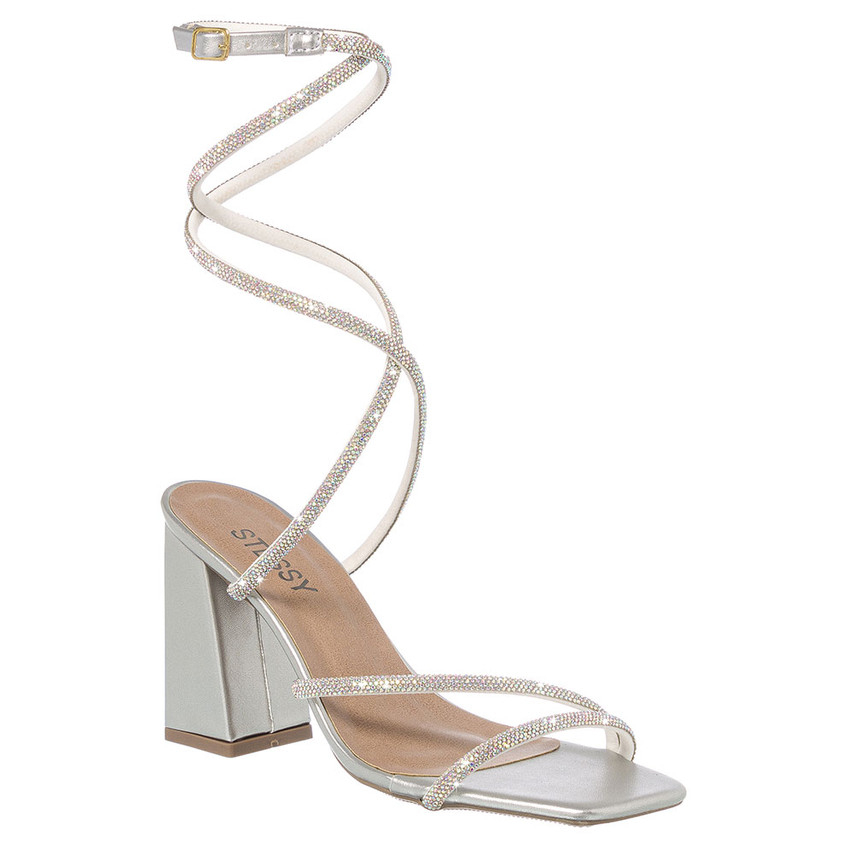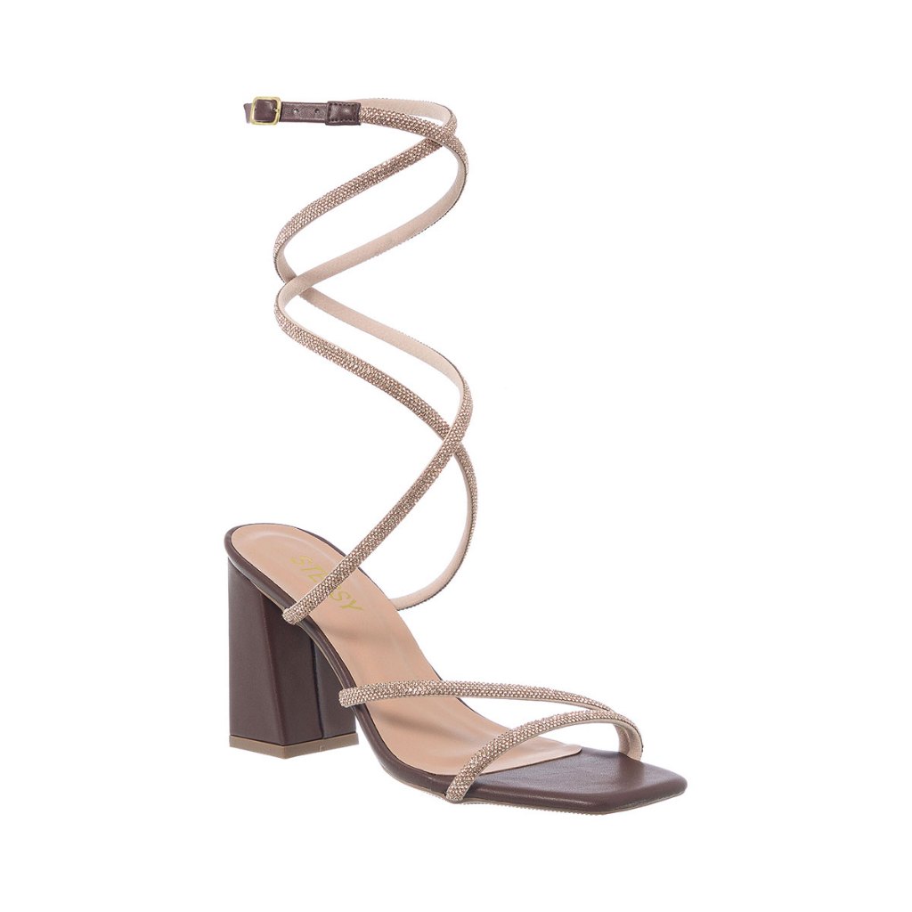 Sandália Feminina Stessy Shoes Brilho Strass Salto Alto Bico Quadrado Confortável Festa Glamour Luxo