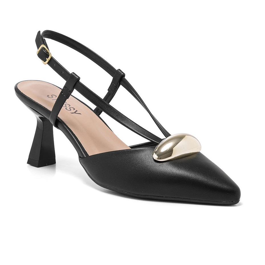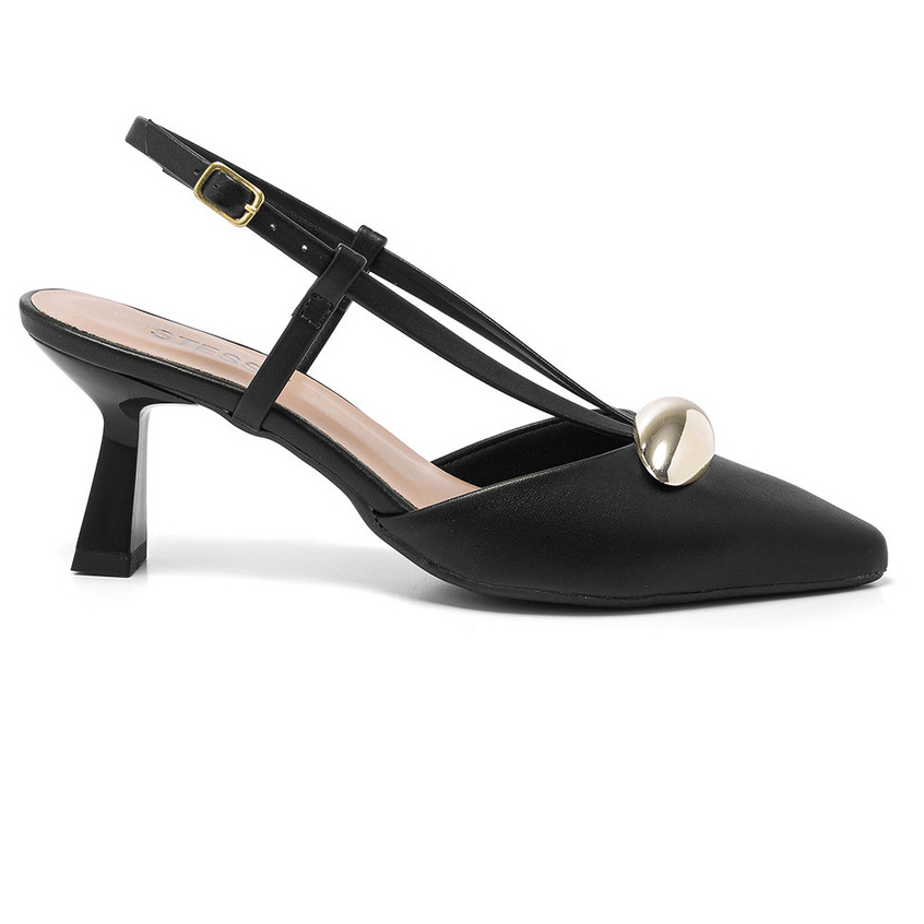 Scarpin Feminino Stessy Shoes Slingback Salto Taça Baixo Enfeite Lesma Elegante Confortável Oferta