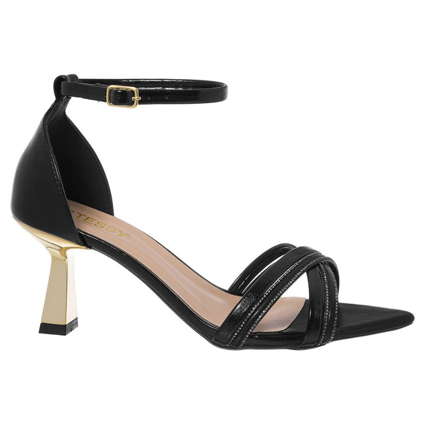 Sandália Feminina Stessy Bico Folha Salto Taça Metalizado Brilho Strass Festa Fechado Confortável