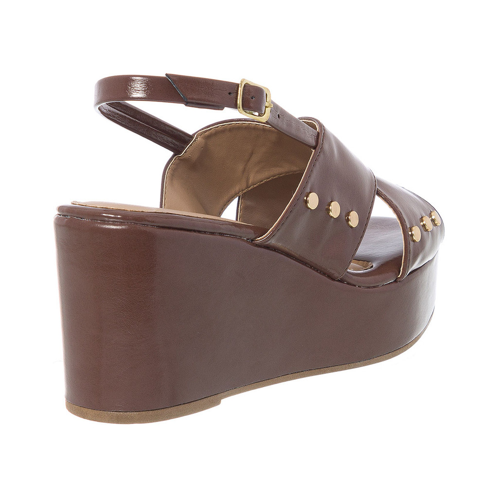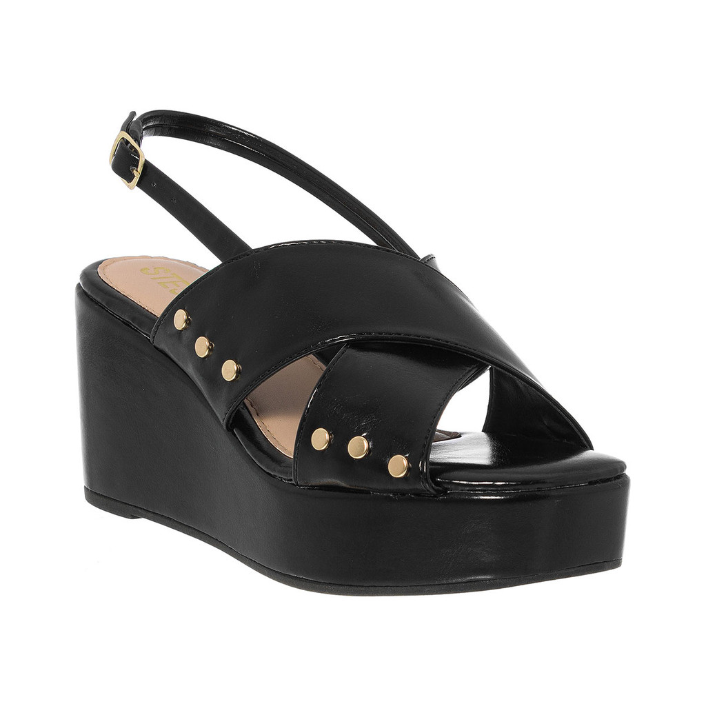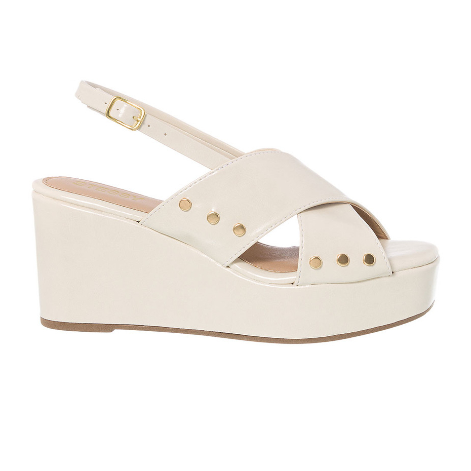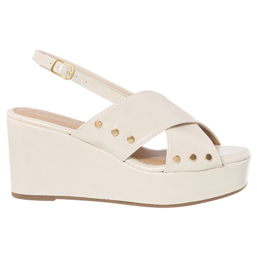 Sandália Feminina Anabela Plataforma Salto Alto Tachas Ilhós Fivela Riras Em X Confortável Premium