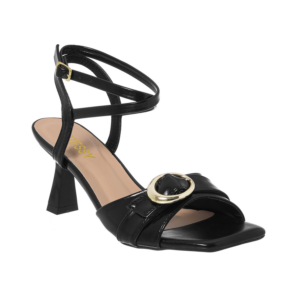Sandália Feminina Salto Médio Geométrico Bico Quadrado Fivela Oval Chique Confortável Blogueira Leve