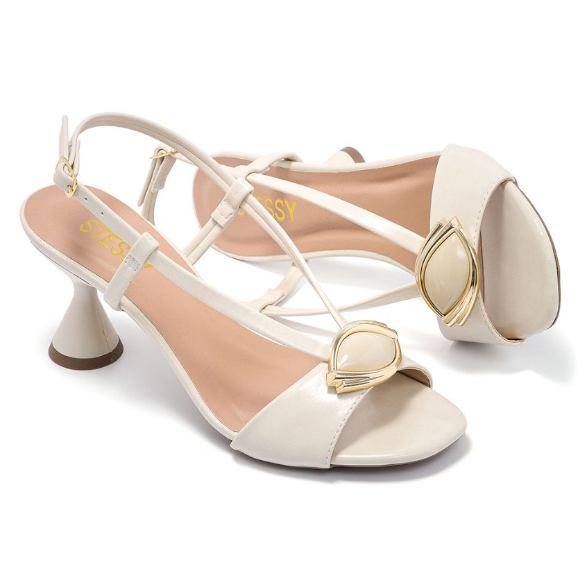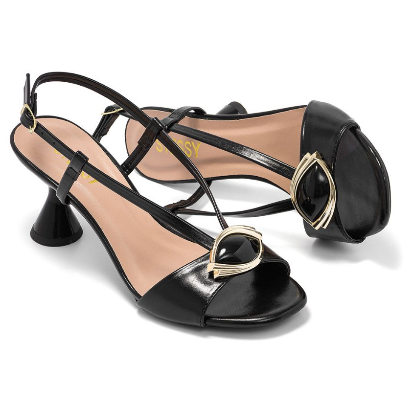 Sandália Feminina Salto Baixo Geométrico Enfeite Dourado Conforto Premium Moda Verão Casual Luxo