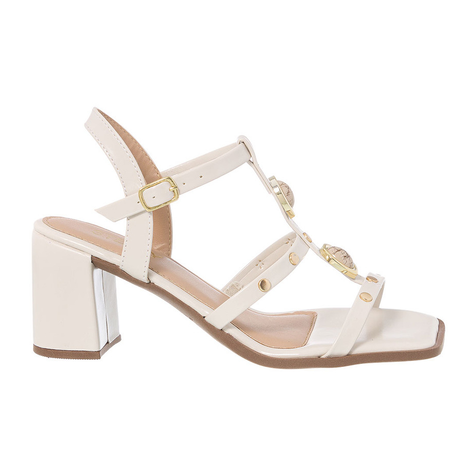 Sandália Feminina Salto Bloco Médio Pedra Marmorizada Boho Chic Elegante Confortável Casual Leve Dia