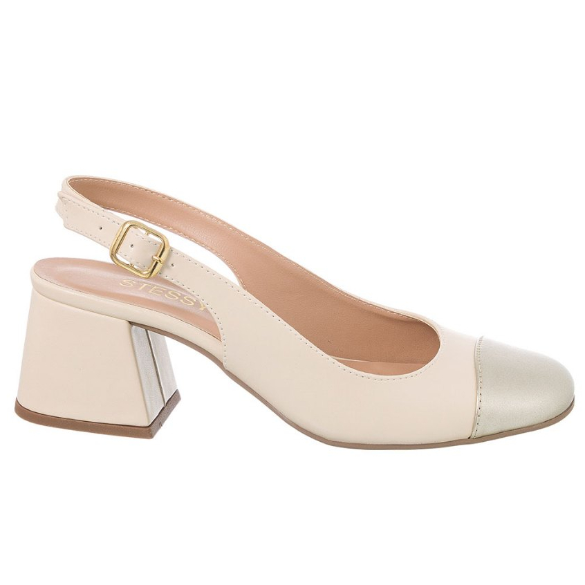 Scarpin Feminino Slingback Salto Grosso Bico Quadrado Leve Fivela Clássico Confort Original Stessy
