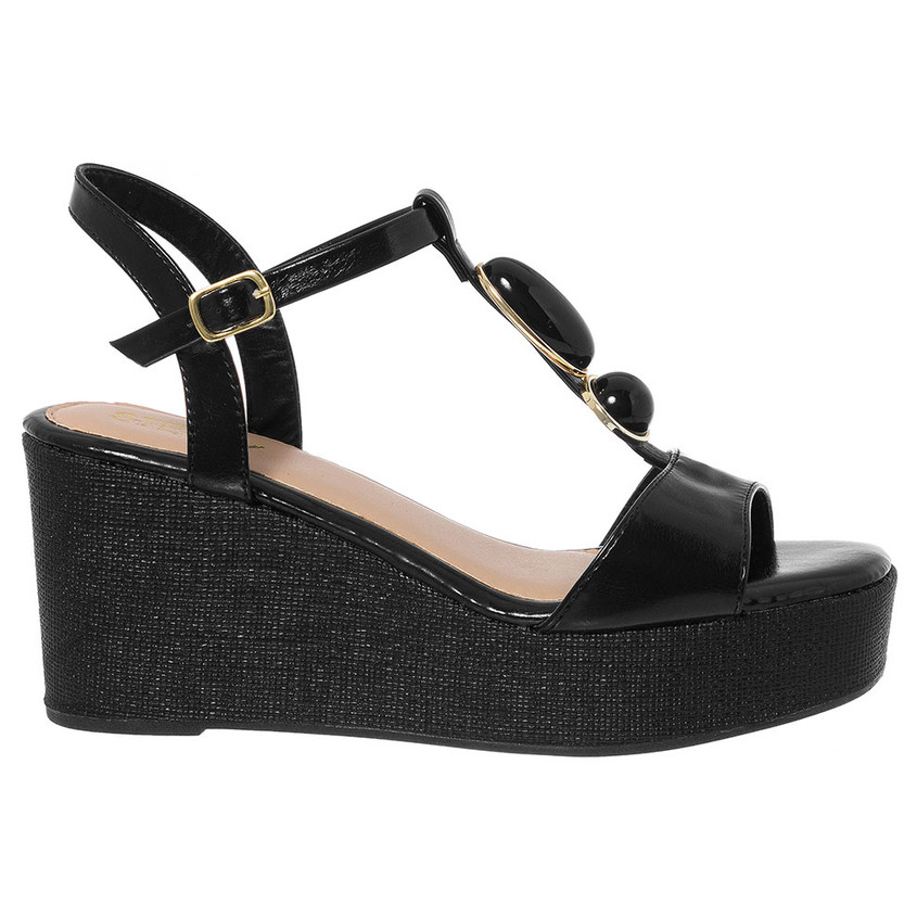 Sandália Anabela Feminina Salto Médio Plataforma Juta Espadrille Boho Chic Pedraria Rafia Conf Verão