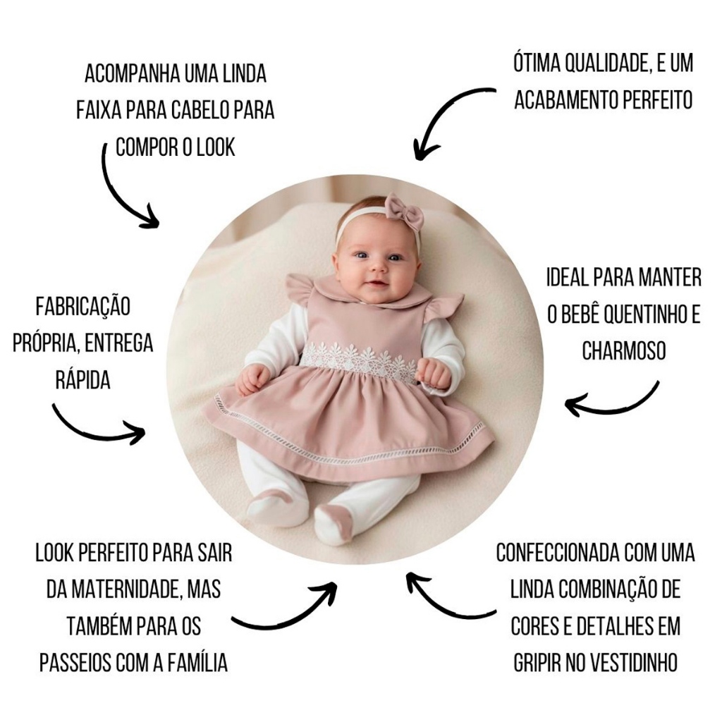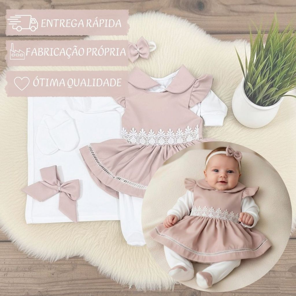 Saída Maternidade Menina Lavínia 05 Peças Roupas de Bebê