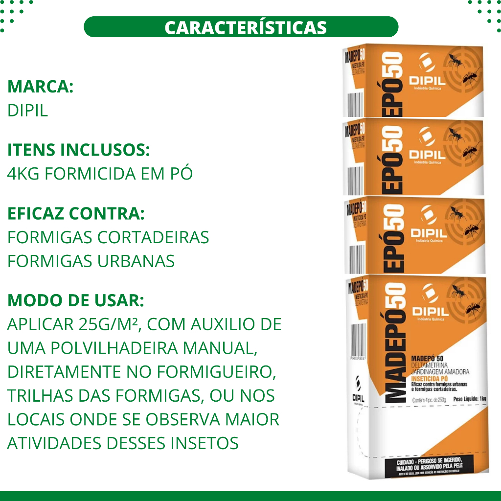 Formicida Dipil Em Pó Madepó Contra Formigas Cortadeira E Urbanas