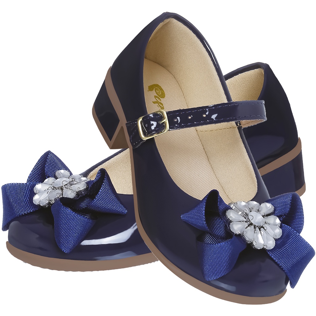 Sapatilha Infantil Feminina Azul Marinho com Salto