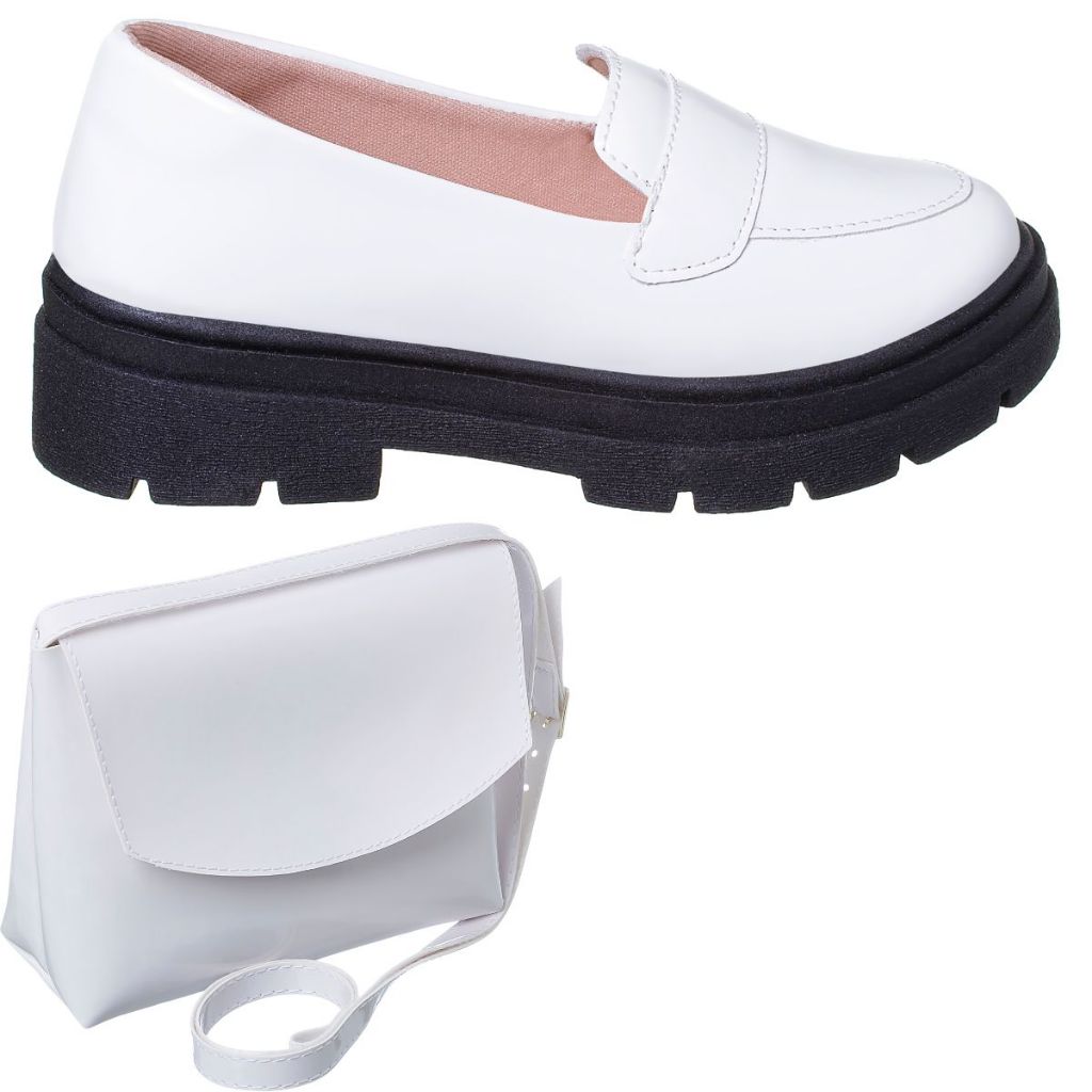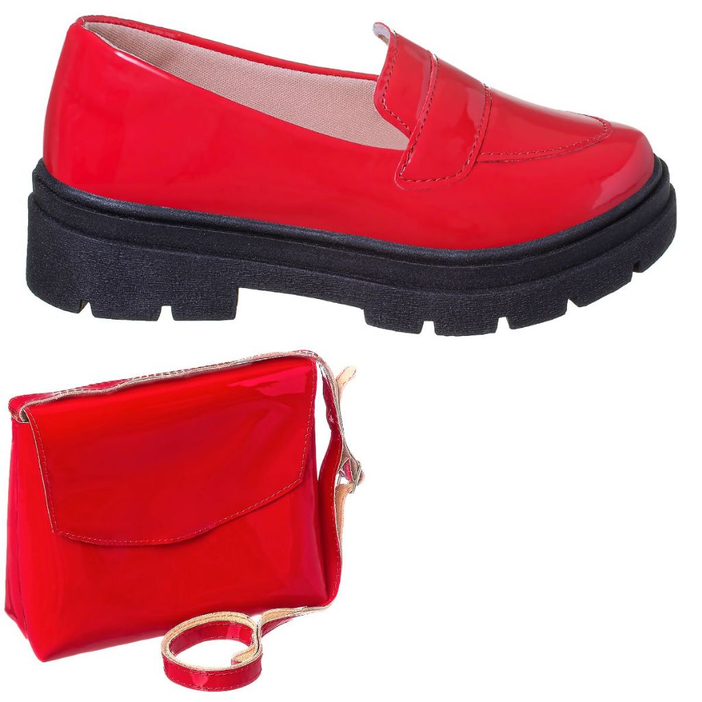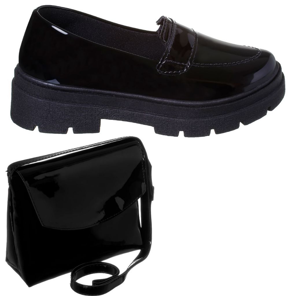 Kit Mocassim Feminino Infanto Juvenil com Bolsinha de Ombro Social
