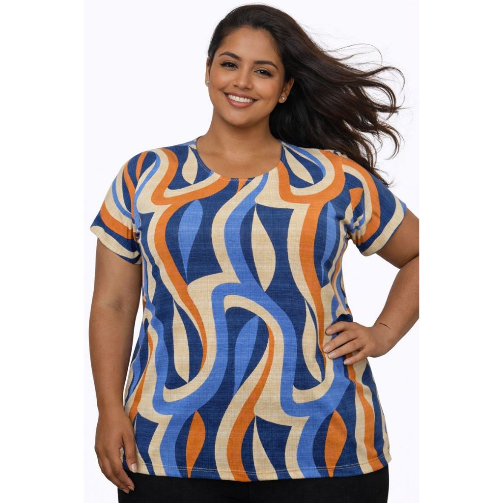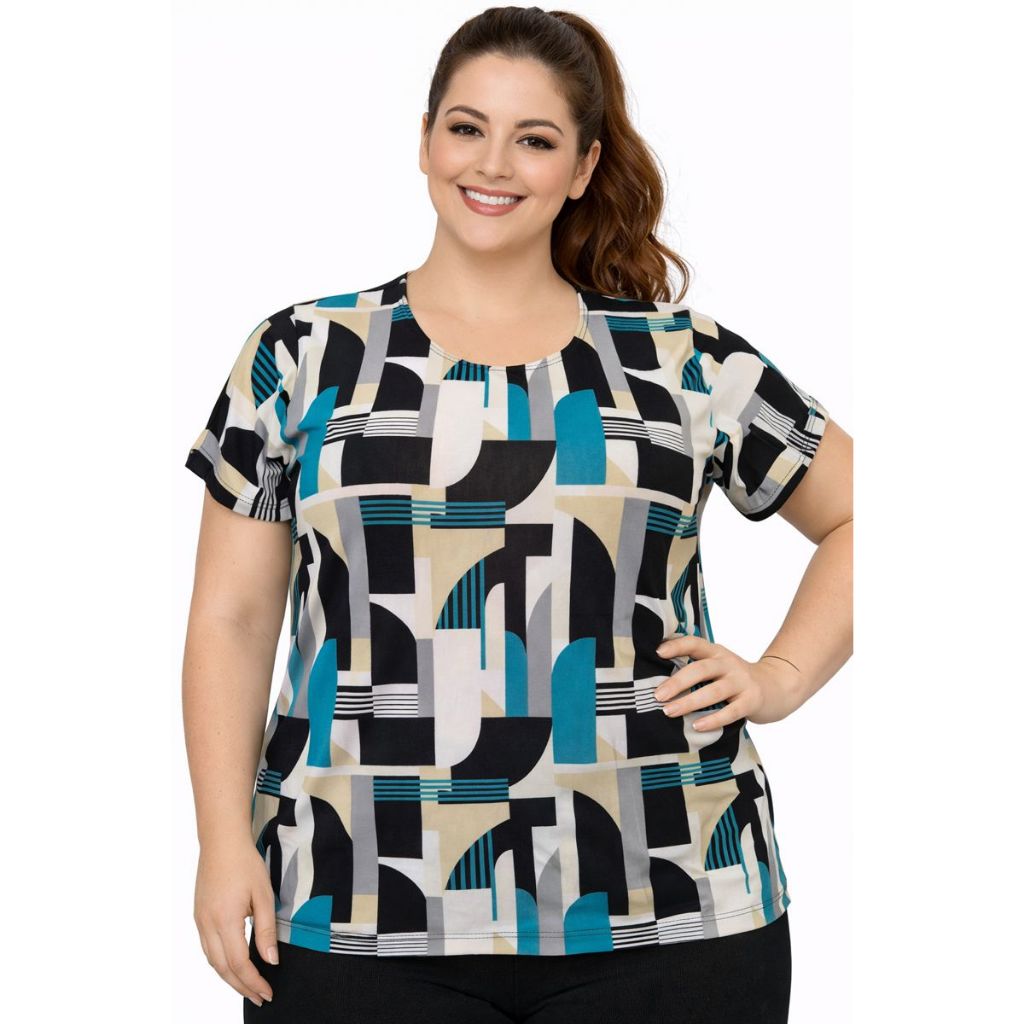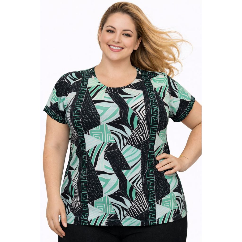 Blusa Plus Size Feminina Manga Curta Malha Liganete Premium
