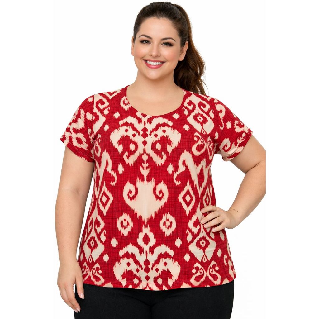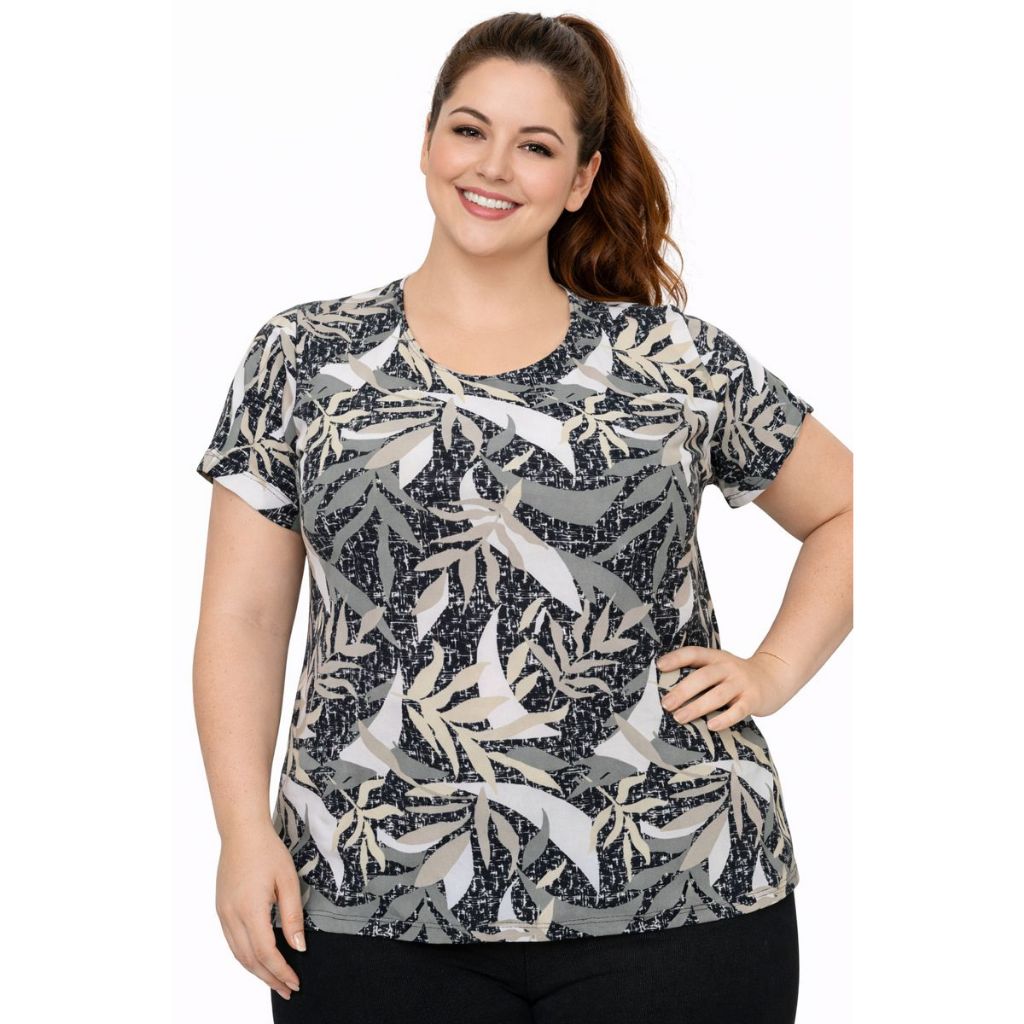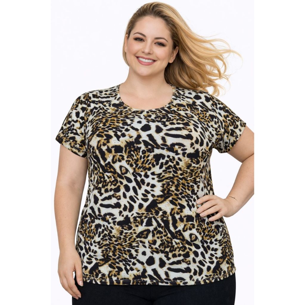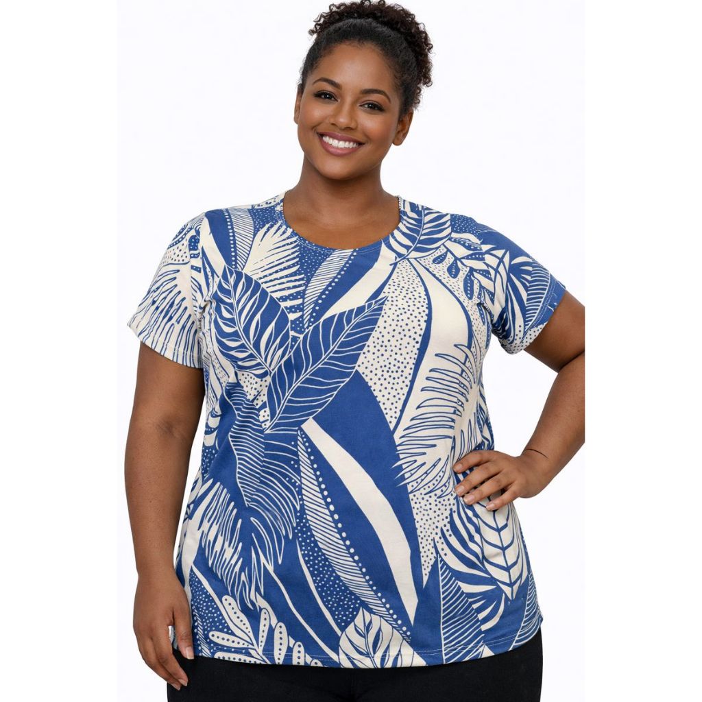 Blusa Plus Size Feminina Manga Curta Malha Liganete Premium